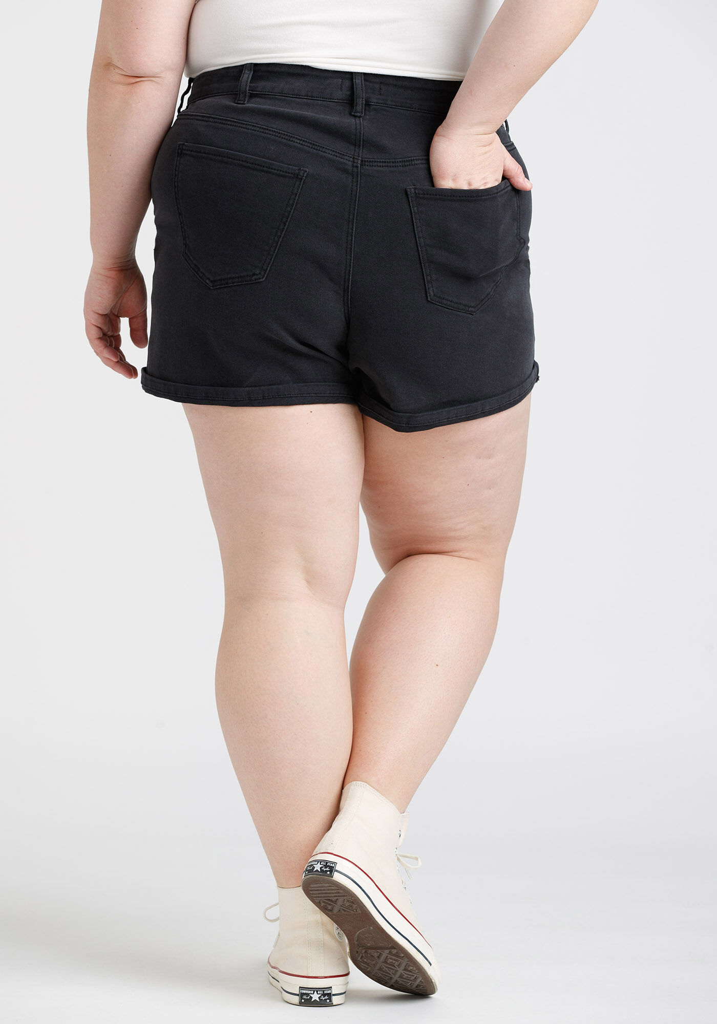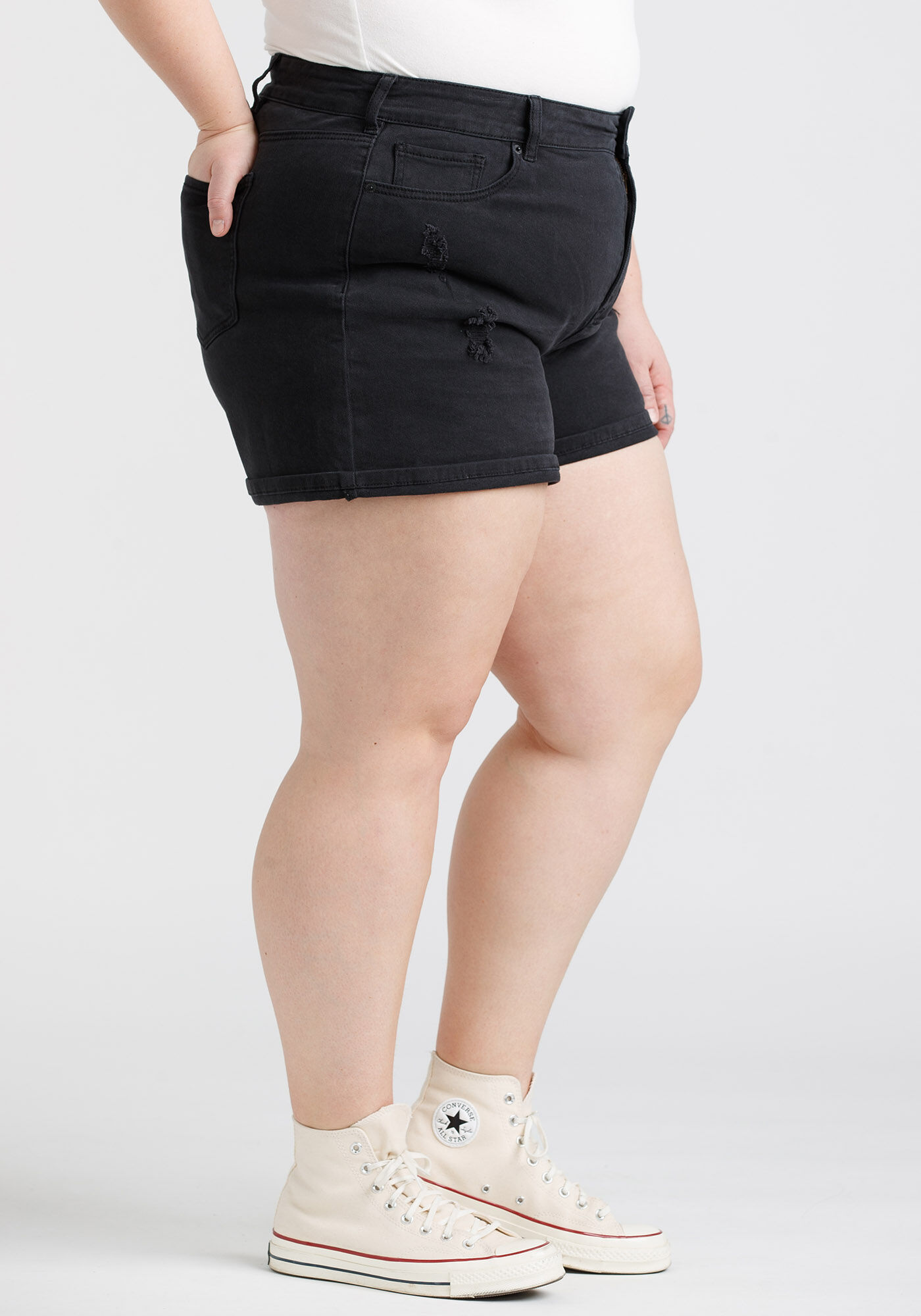 Women’s Plus High Rise Black Destroyed Cuffed Jean Shortie