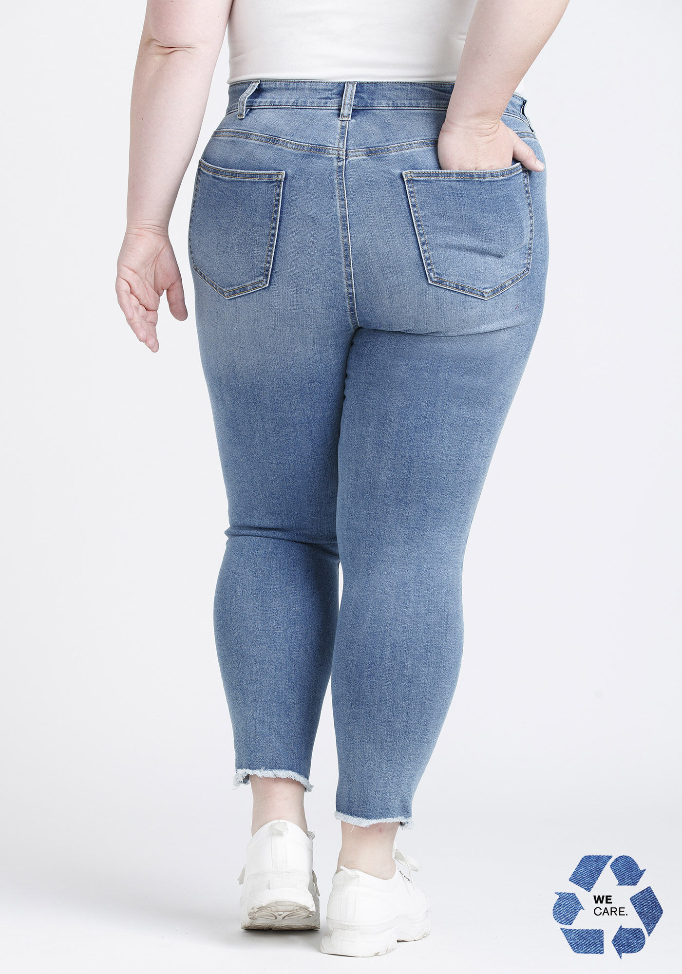 Women's Plus High Rise Destroyed Chewed Hem Ankle Skinny Jean Image 2