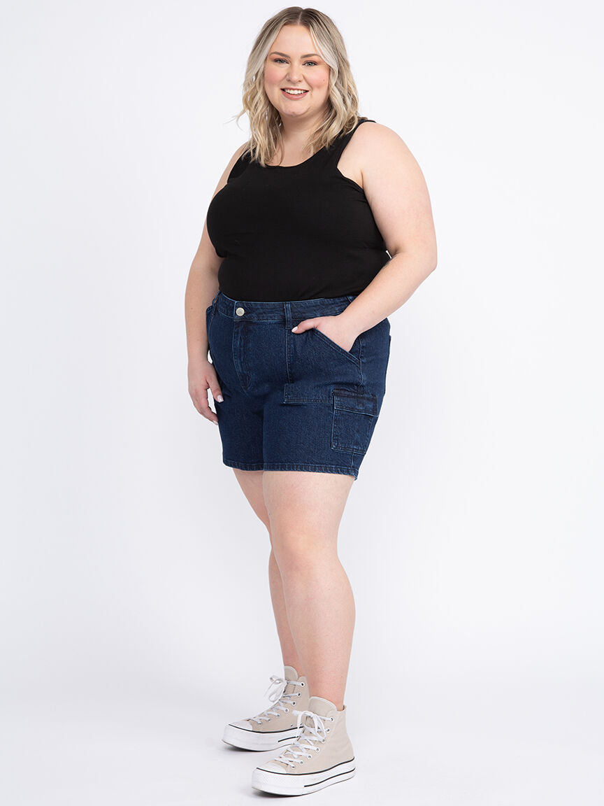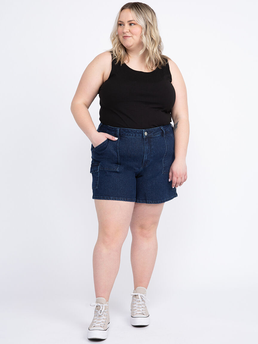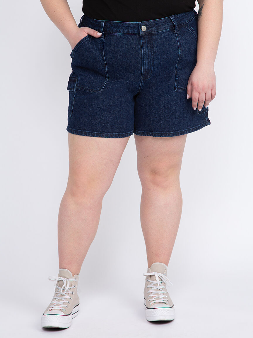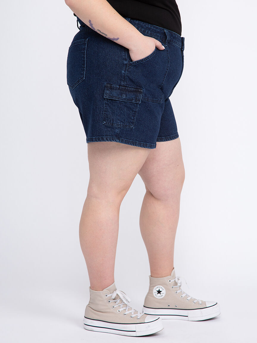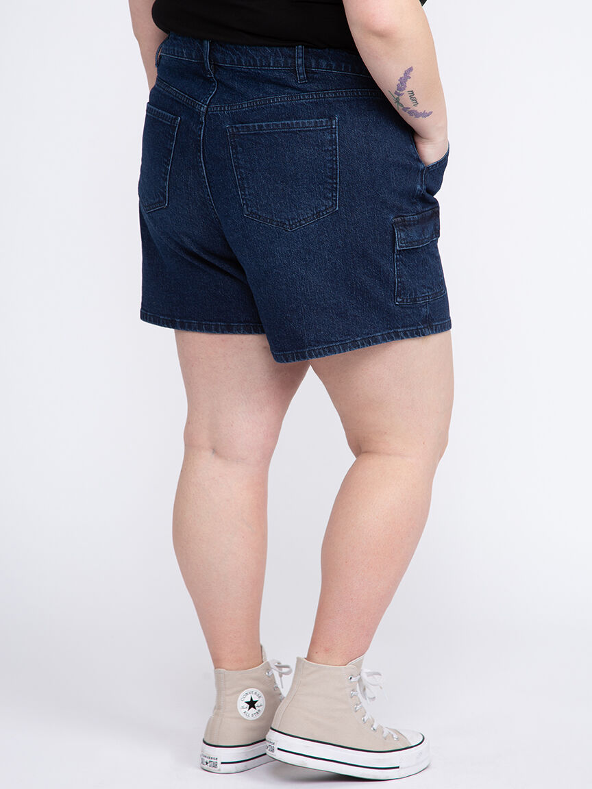 Women's Plus High Rise Utility Cargo Denim Shortie