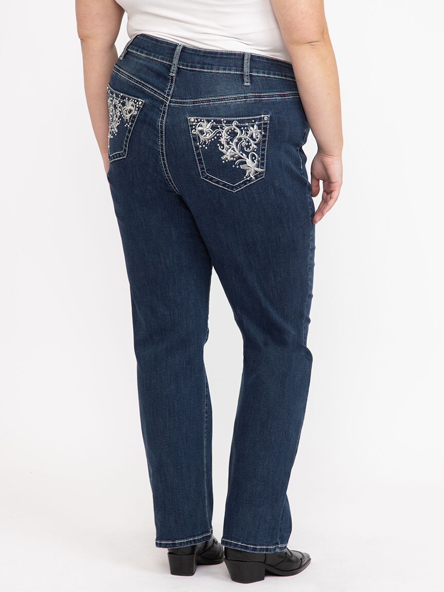 Women's Plus Medium Dark Wash Embellished Straight Jeans Image 5