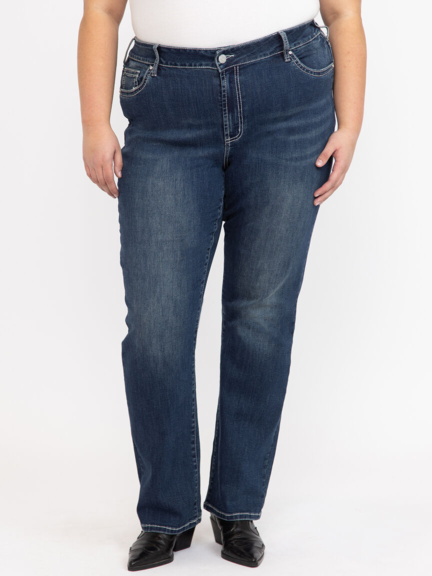 Women's Plus Medium Dark Wash Embellished Straight Jeans Image 1
