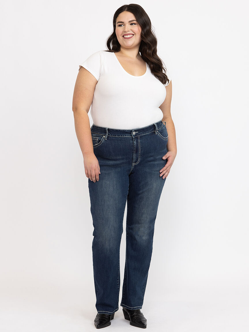 Women's Plus Medium Dark Wash Embellished Straight Jeans Image 4