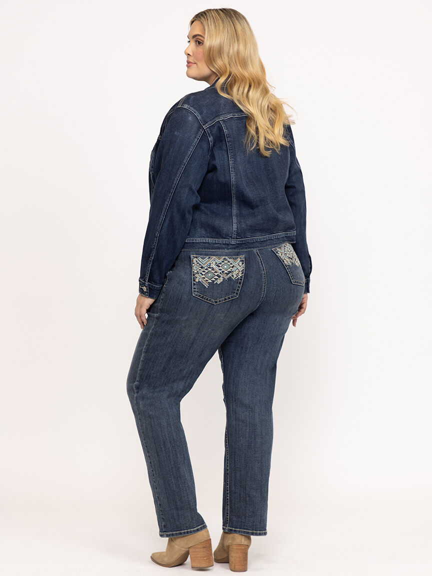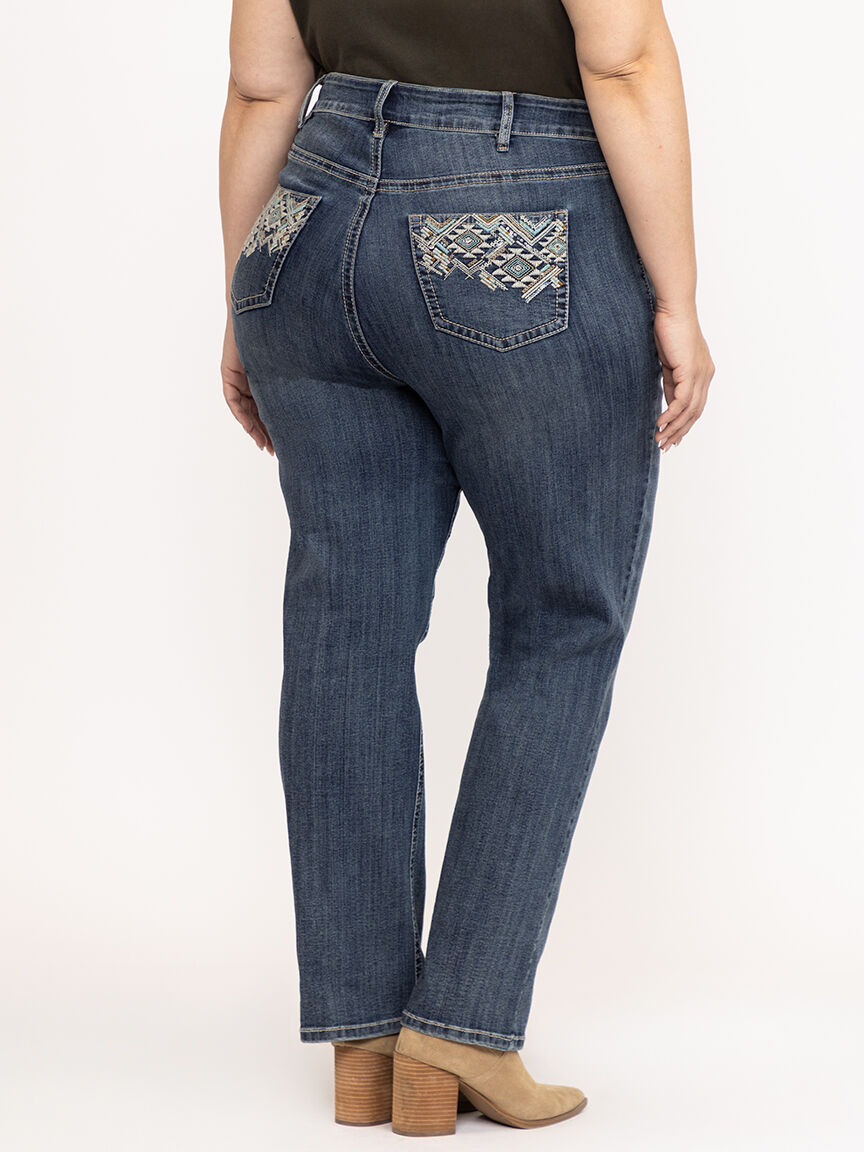 Women's Plus Medium Dark Wash Geo Embroidered Straight Jeans Image 2