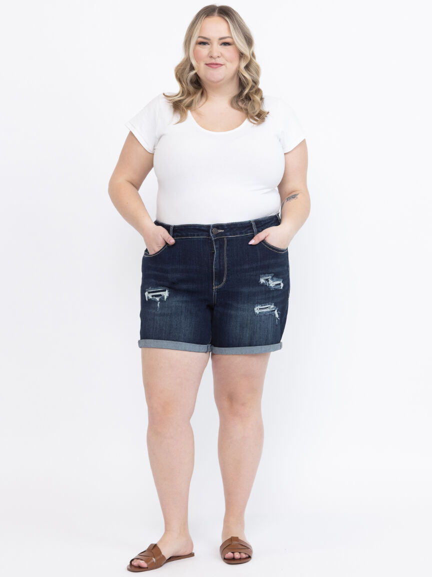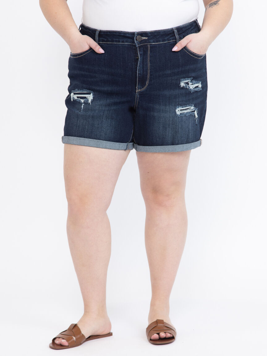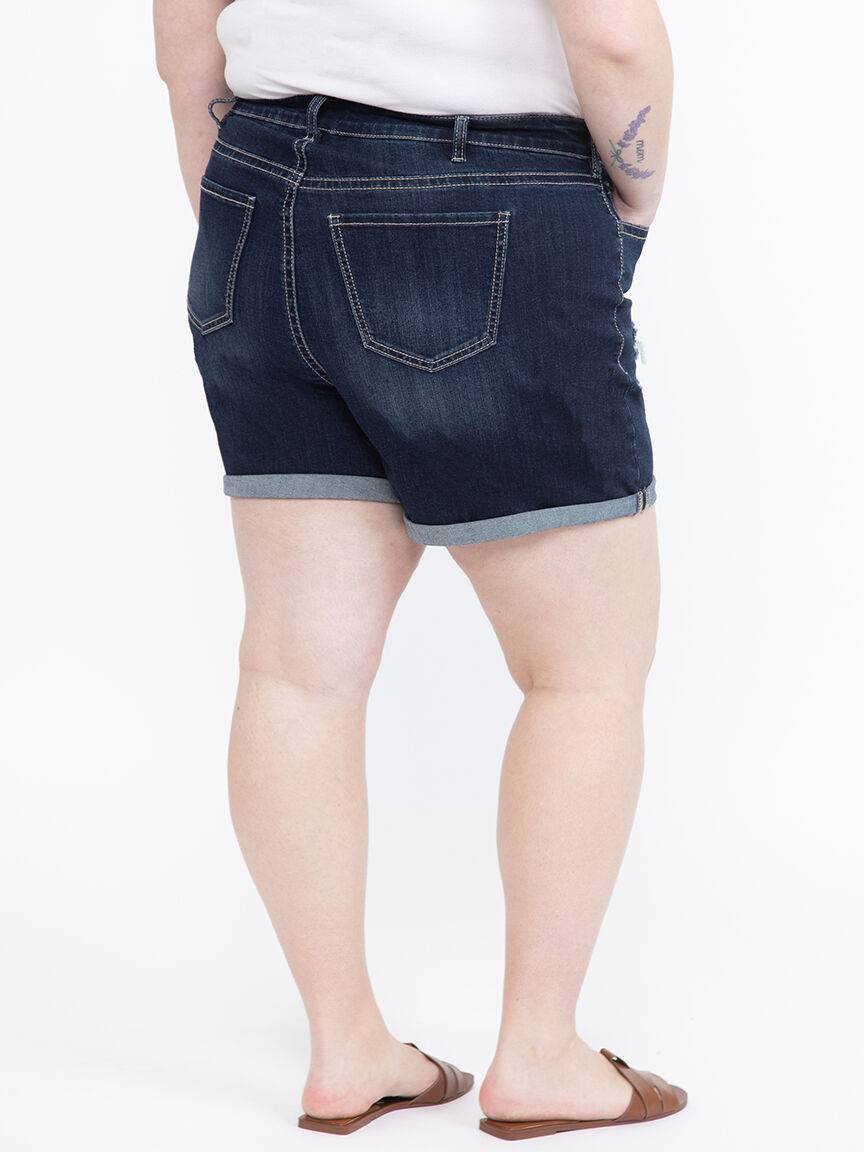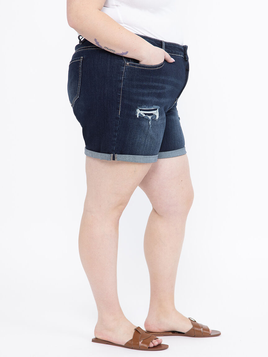 Women's Plus Rip & Repair Cuffed Midi Dark Wash