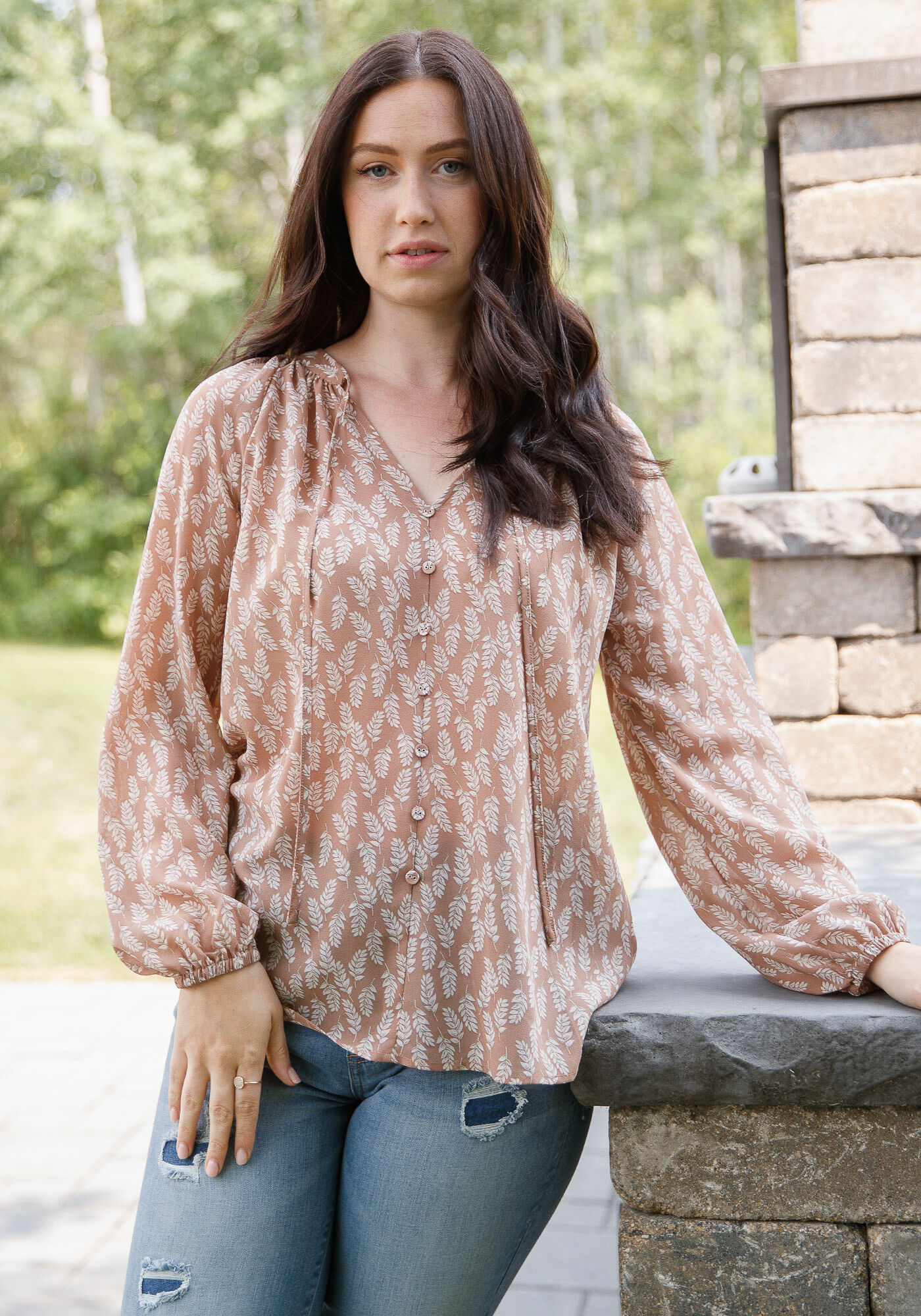 Women's Printed Peasant Blouse Image 2