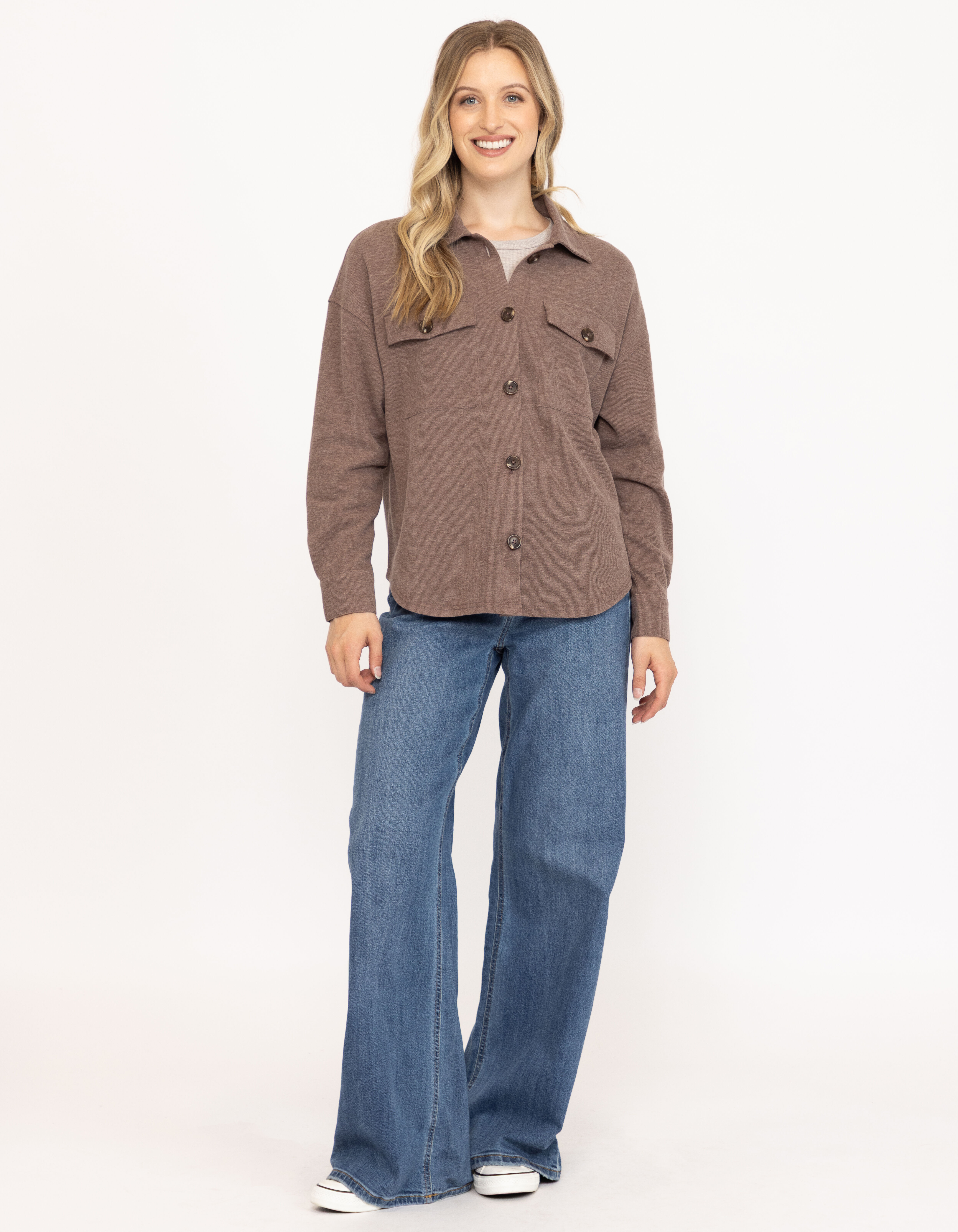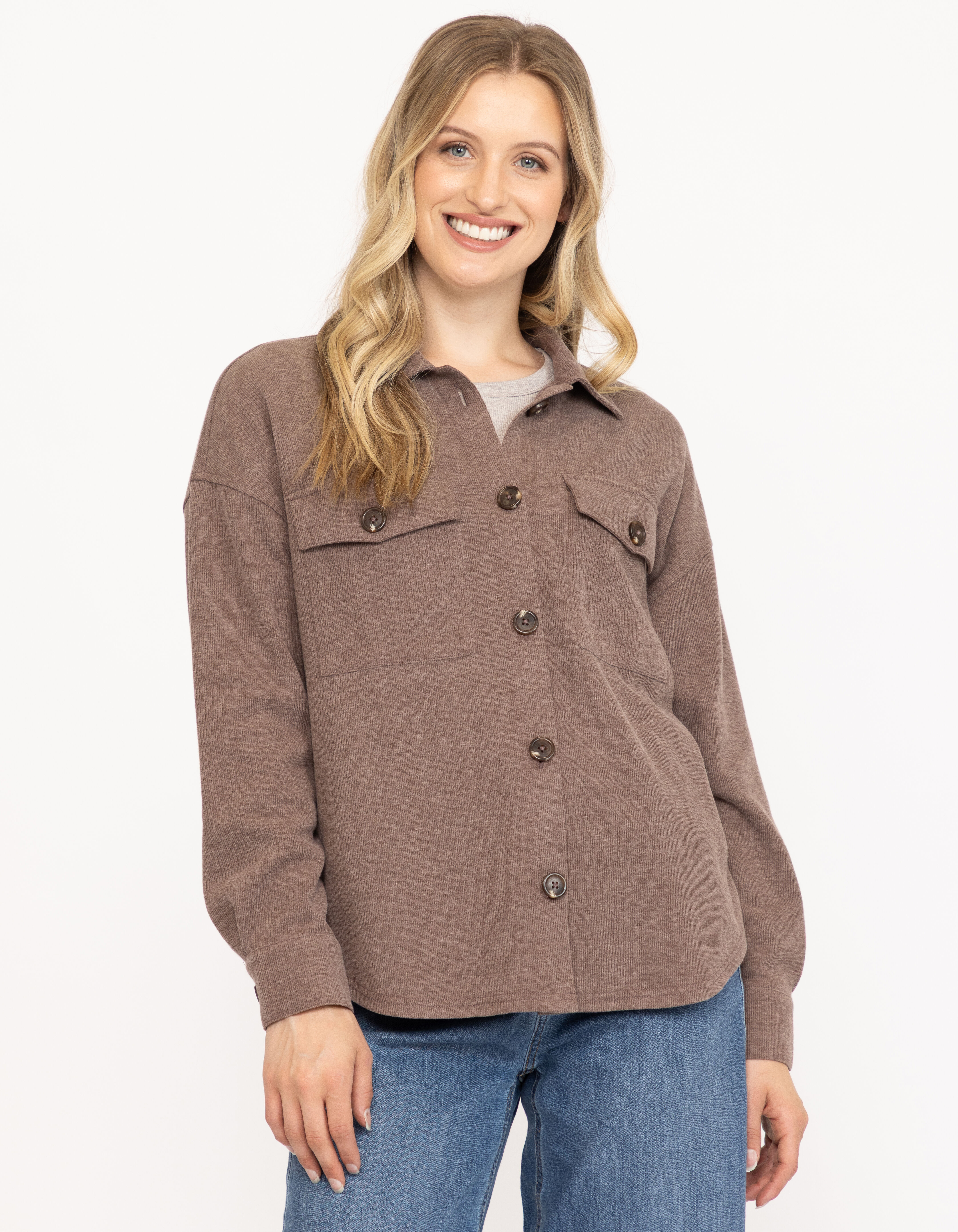 Women's Rib Button Front Shirt Image 1