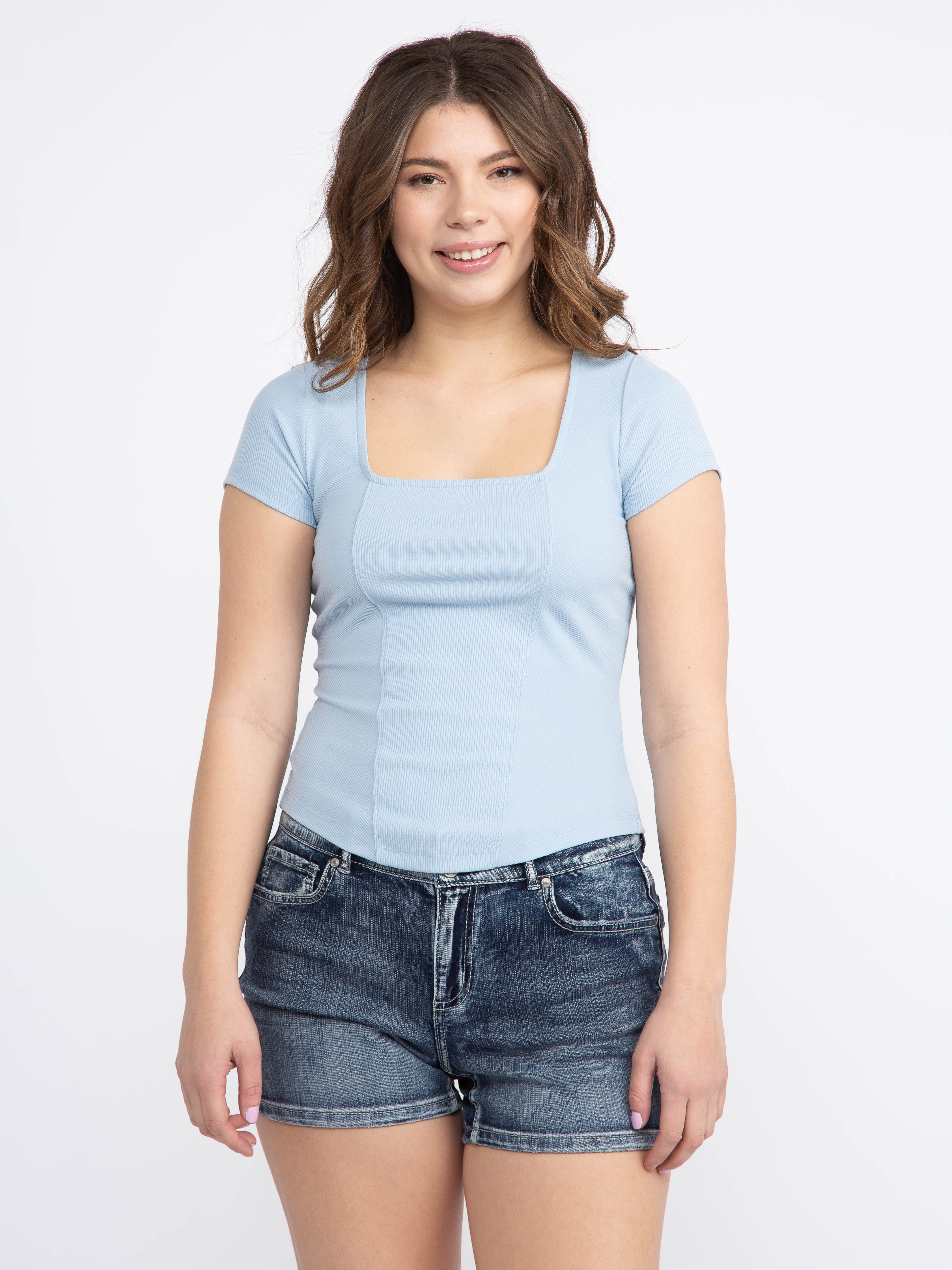 Rated 5 out of 5 by from Ribbed Corset Tee This tee fits really nice. I am petite and the xs fit just nicely. Got the bright pink! Such a fun colour!