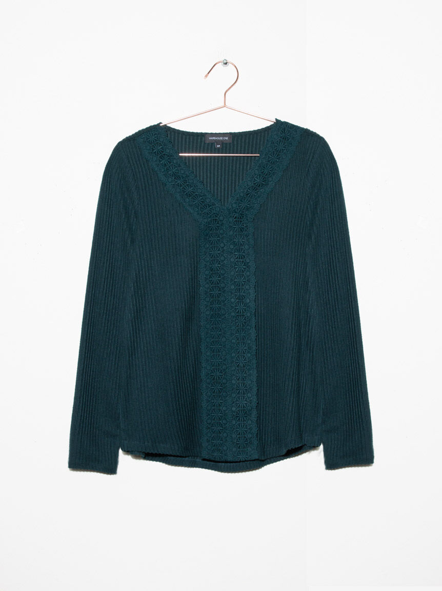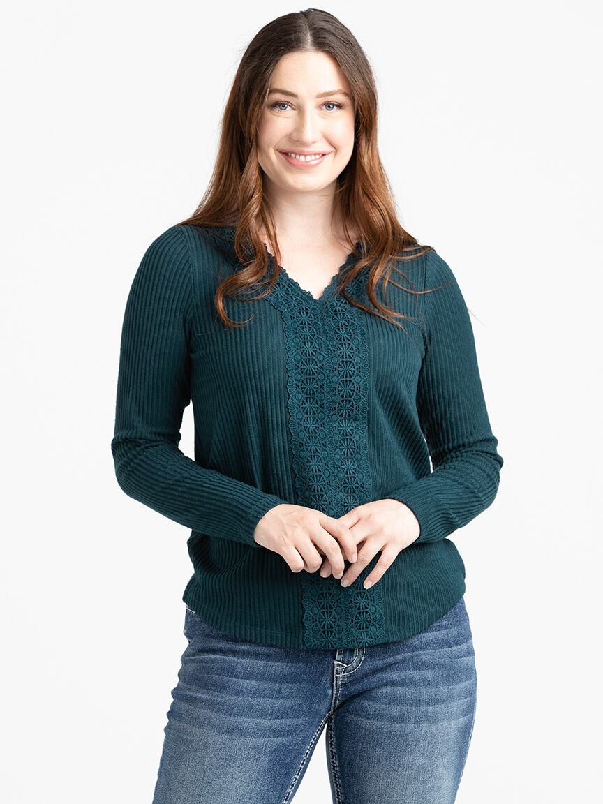 Women's Rib Lace Trim Top