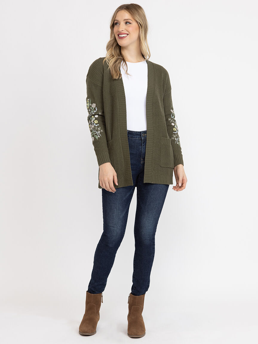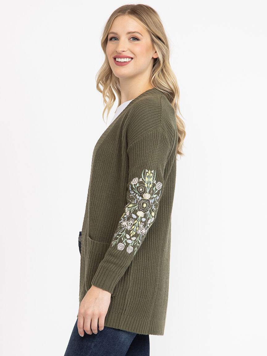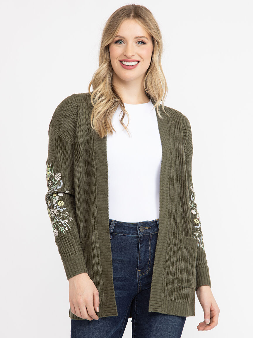Women's Ribbed Cardigan With Embroidery Image 1