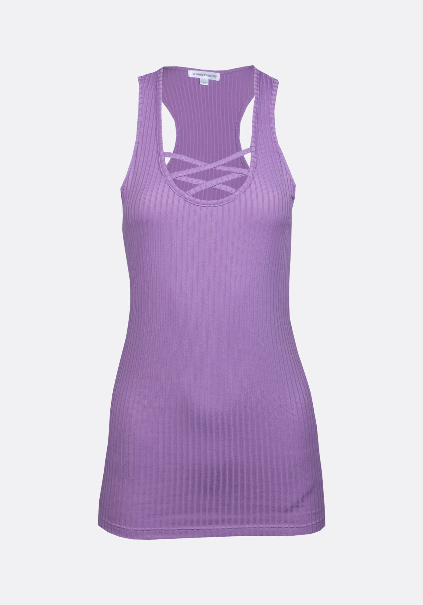 Women's Ribbed Cross Neck Racerback Tank Image 1
