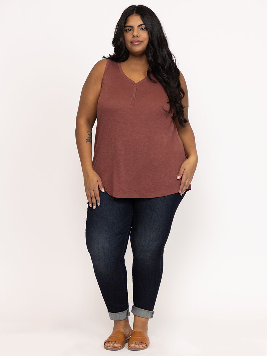 Women's Ribbed Henley Tank Image 1