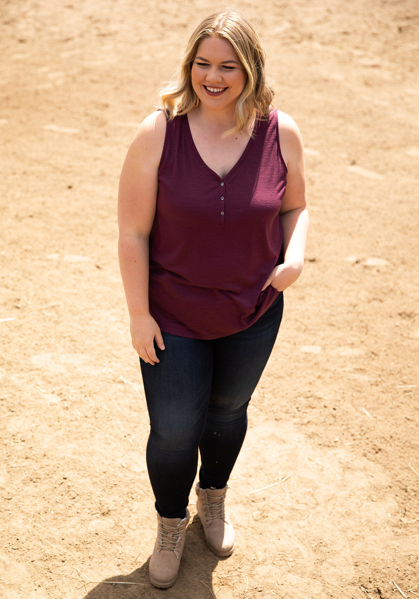 Women's Ribbed Henley Tank Image 4