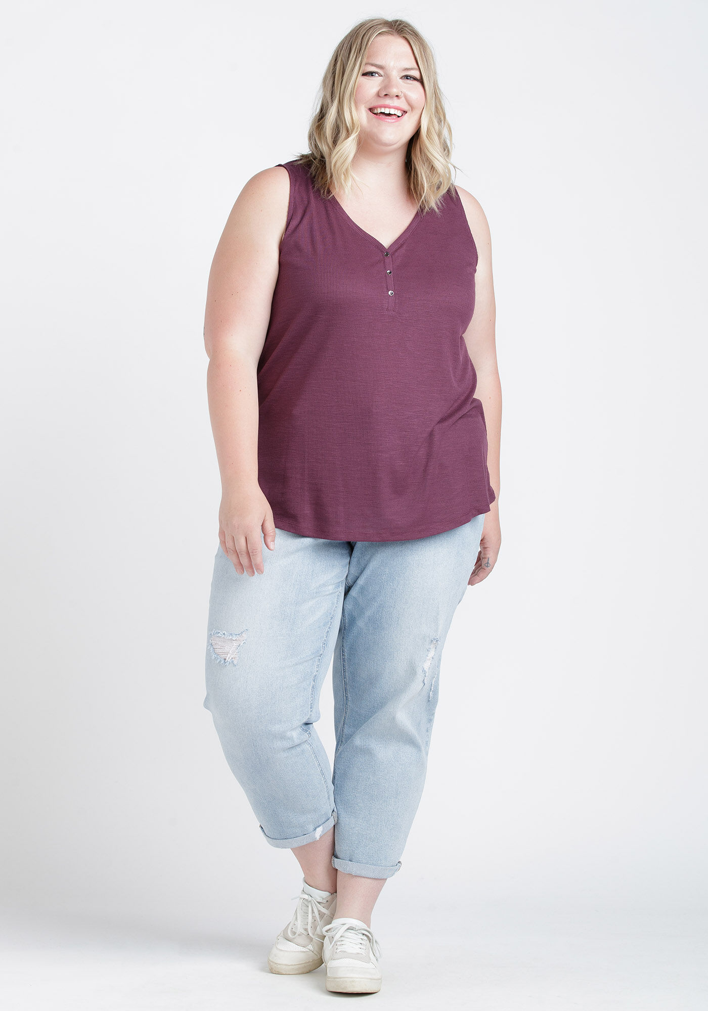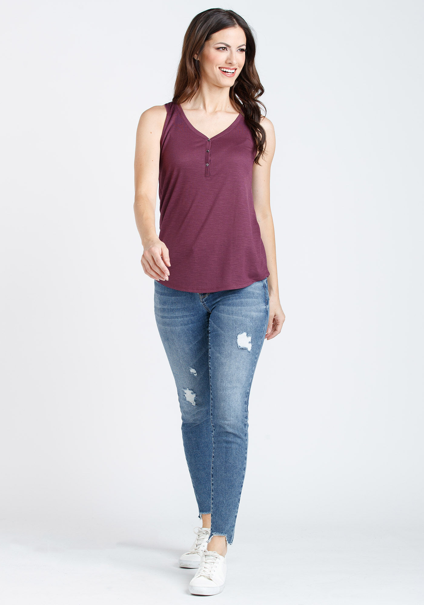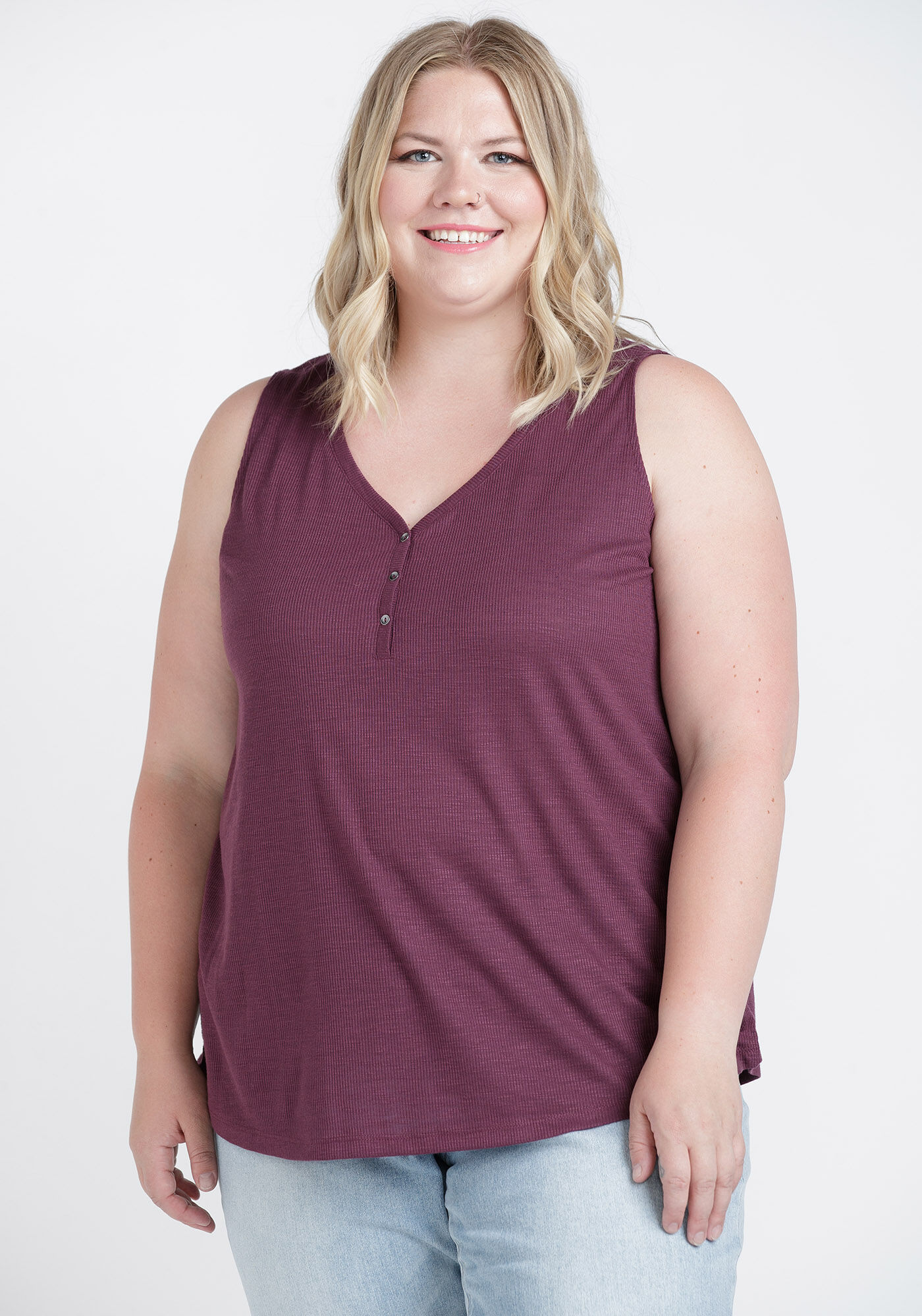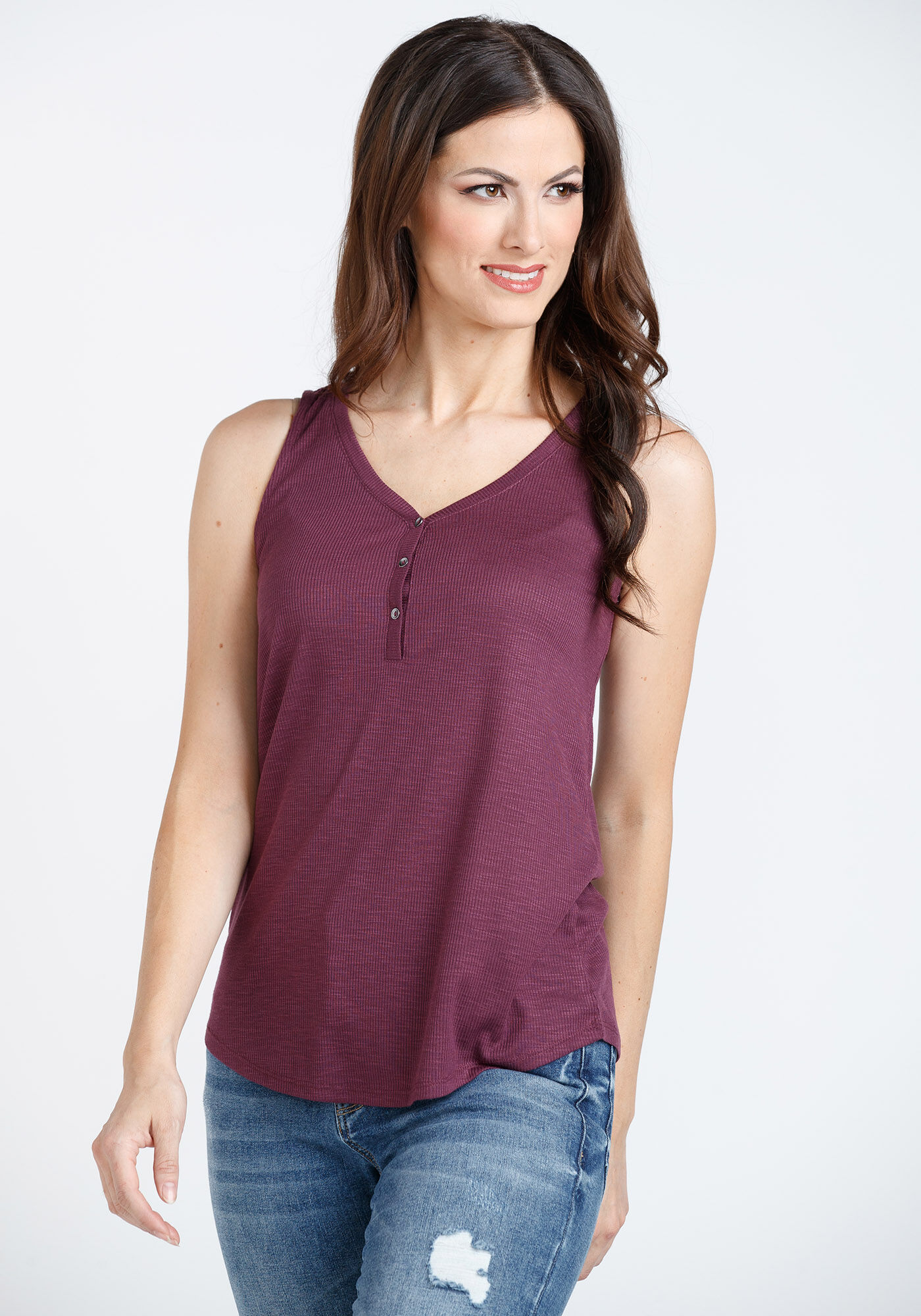 Women's Ribbed Henley Tank Image 1