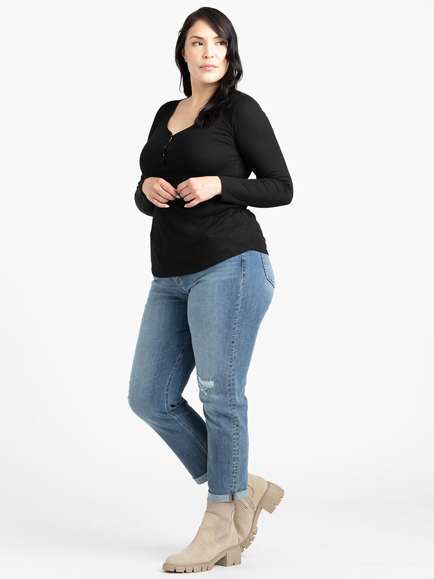 Rated 5 out of 5 by from Bought it in four colours! I did size up for a better fit but now own this top in four colours! It’s also a great fall layering piece and nice material too. Washes great!