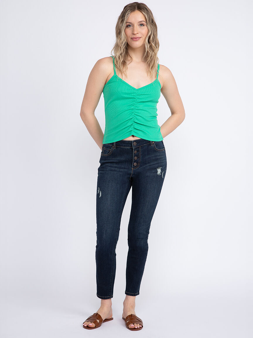 Rated 5 out of 5 by from Fun summer staples I bought both colours in this shirt. It is quite flattering with the ruche detail. I have worn both shirts at least once a week each since purchase! The only negative, in my opinion, is there isn't more colours!