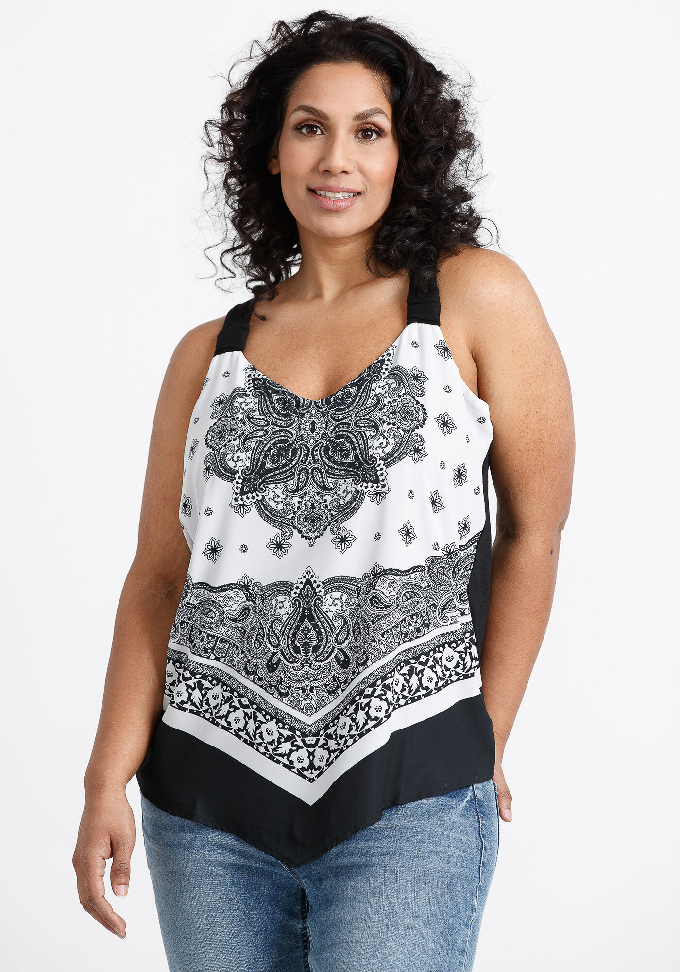 Rated 3 out of 5 by from Women’s scarf print tank I love it looks great and feels good on only thing I don’t like is that the strap could be a bit shorter as it hangs and shows alittle bit of cleavage so I will be making them a little shorter. Other then that it will be a love tank for summer time !!