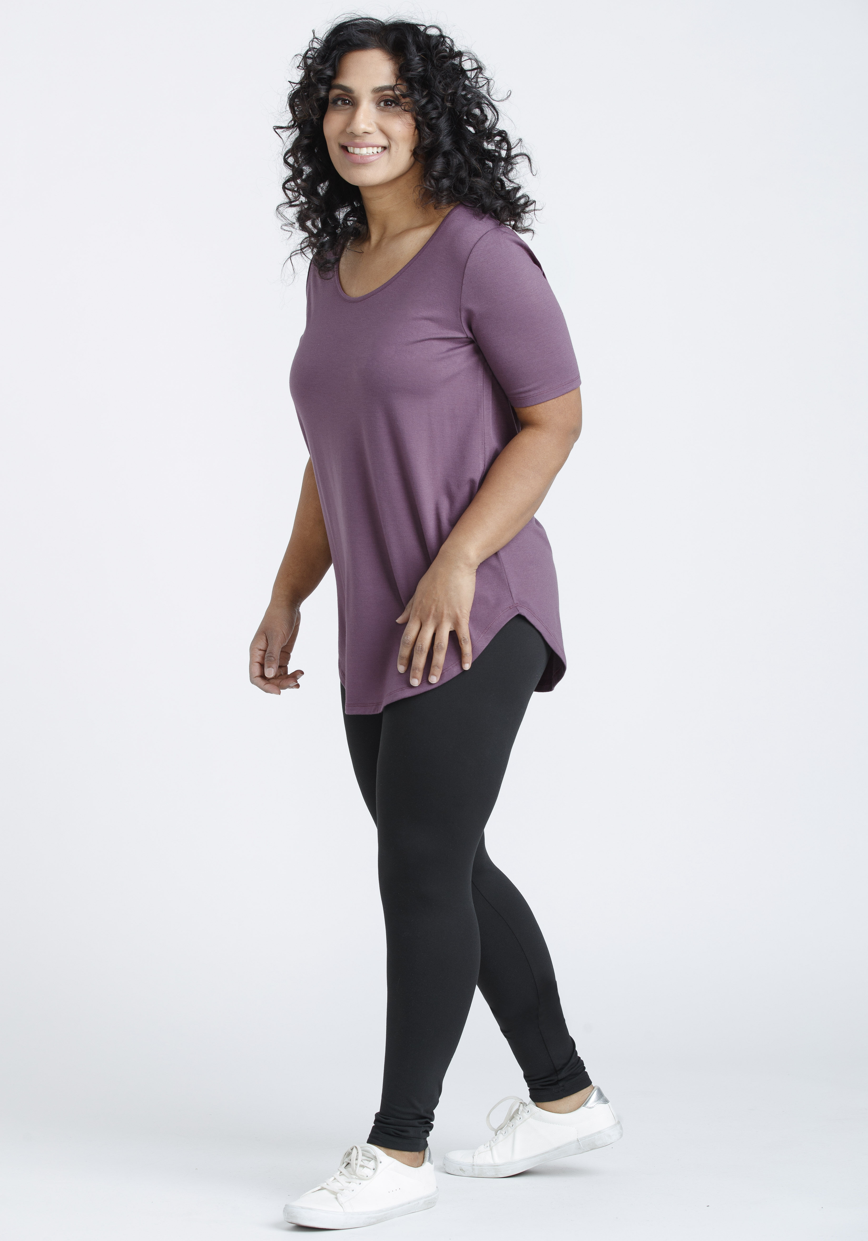 Rated 5 out of 5 by from Just what I was looking for! This top is soft, lightweight and flows. It's long enough to wear with leggings!