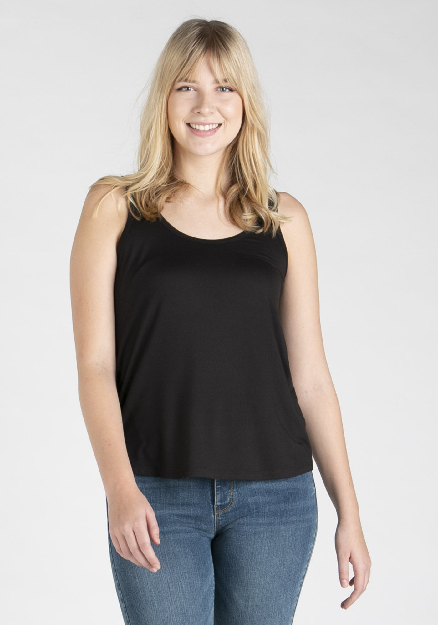 Rated 5 out of 5 by from Comfortable Great to wear on its own or under a cardigan. It’s a nice fit, not too loose under the arms like some tanks