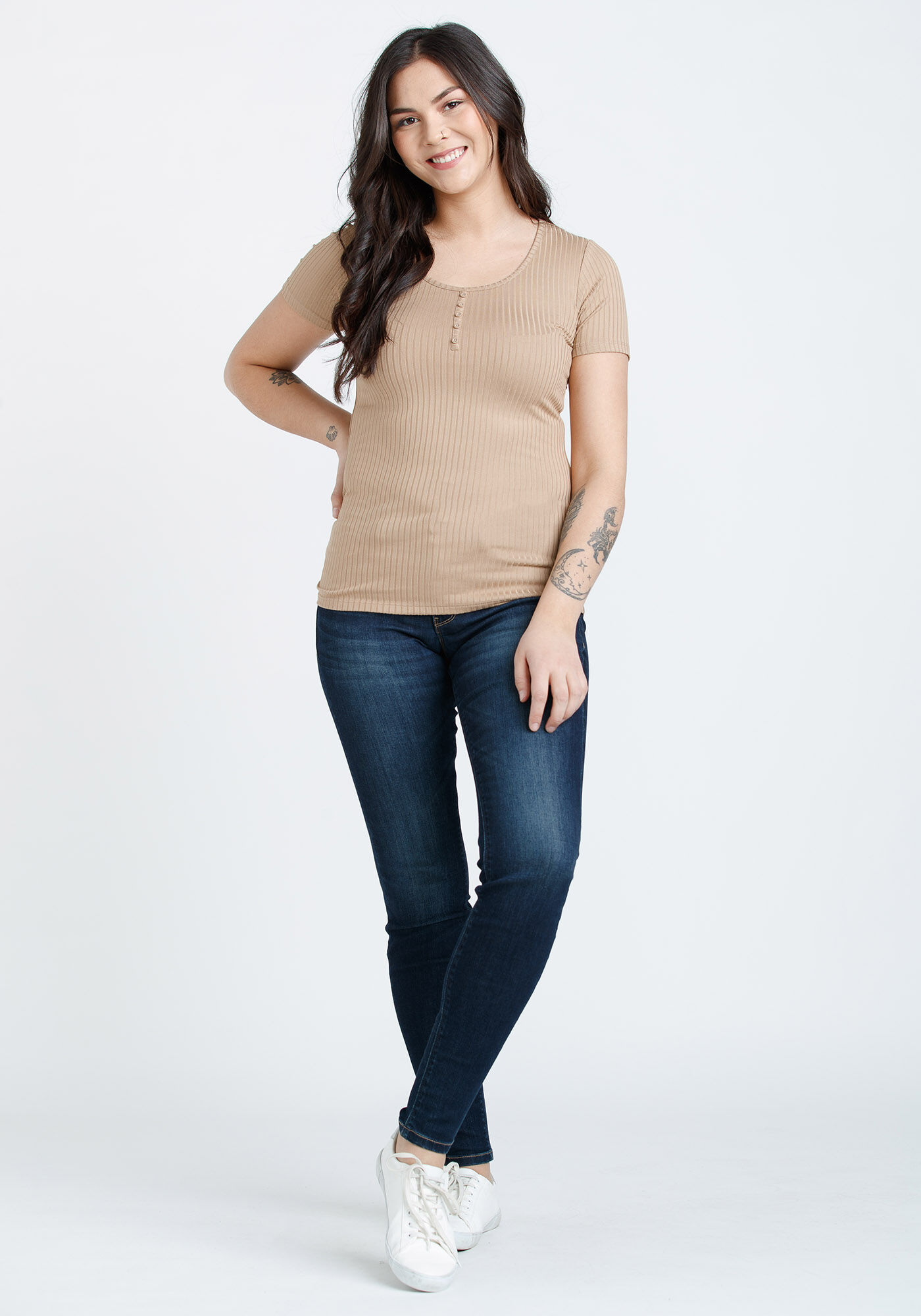 Women's Scoop Neck Ribbed Henley Tee Image 1