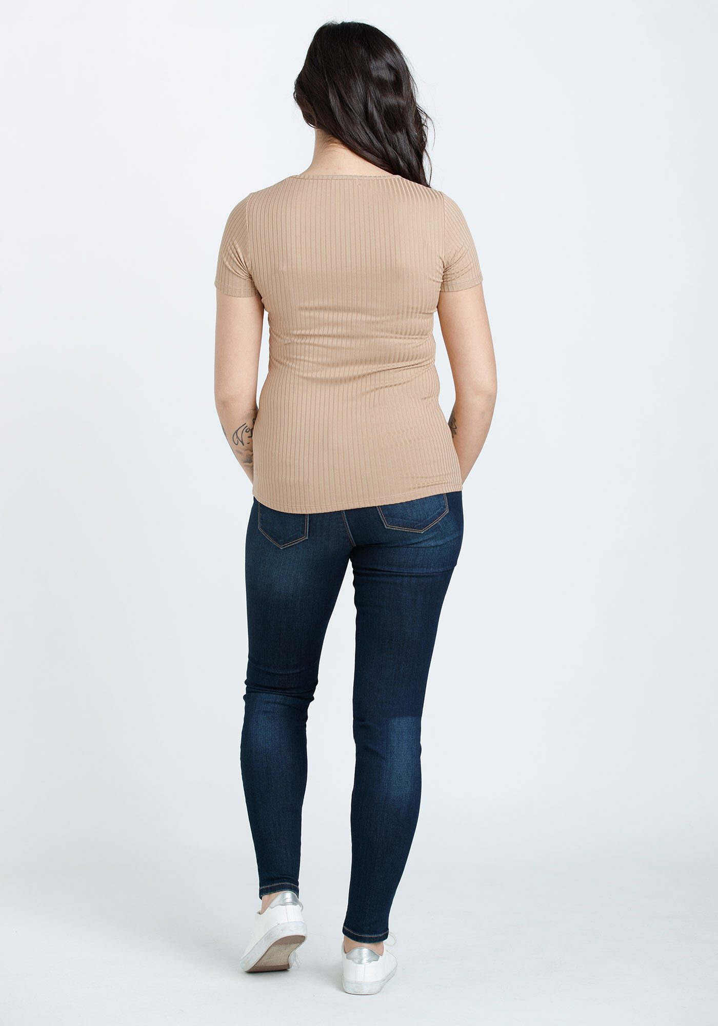 Women's Scoop Neck Ribbed Henley Tee Image 4