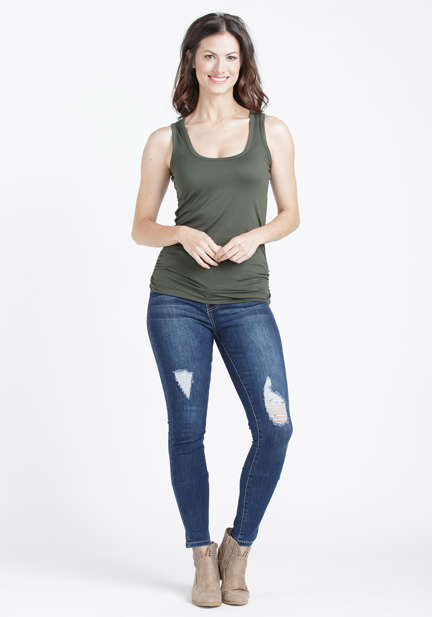 Women's Scoop Neck Side Ruched Tank Image 1