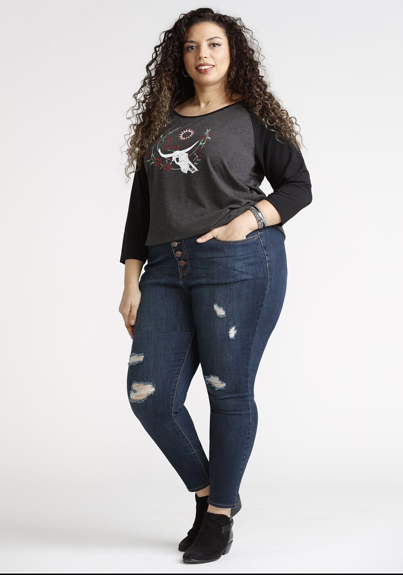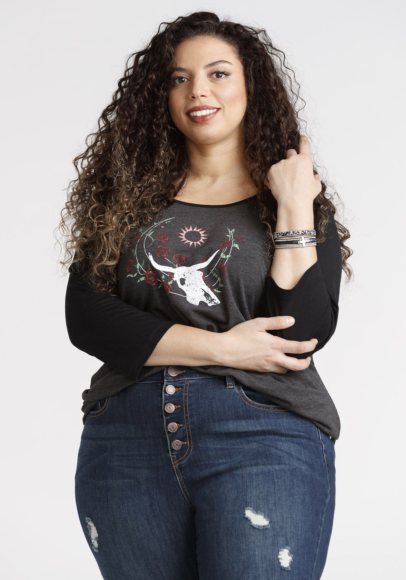 Women's Skull Baseball Tee Image 1