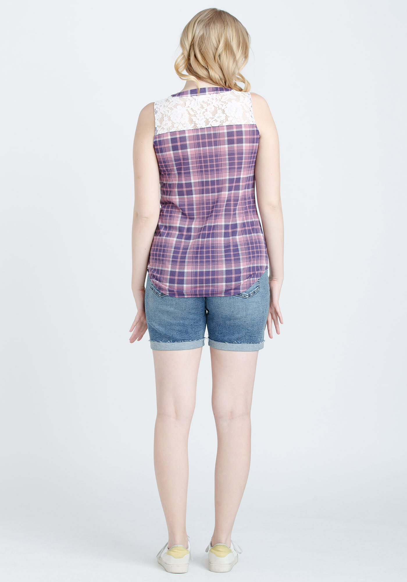 Women's Sleeveless Knit Plaid With Lace Image 3