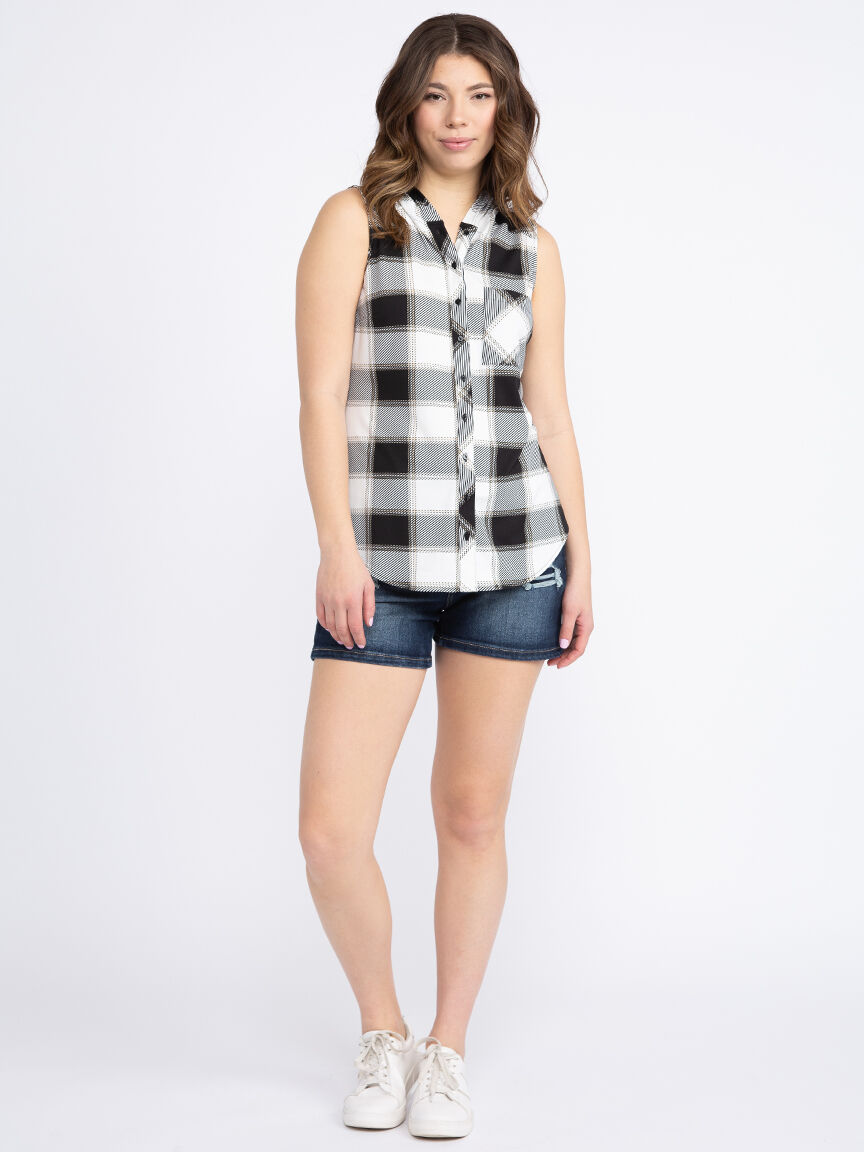 Women's Sleeveless Plaid Hoodie Image 2