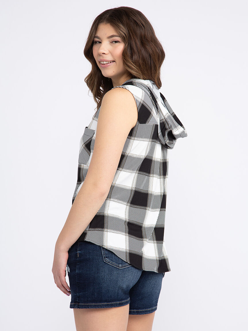 Women's Sleeveless Plaid Hoodie Image 3