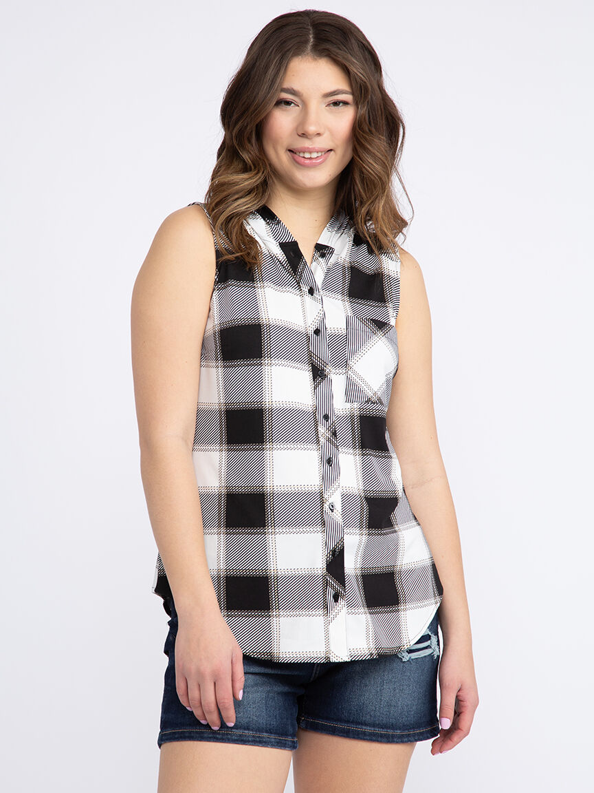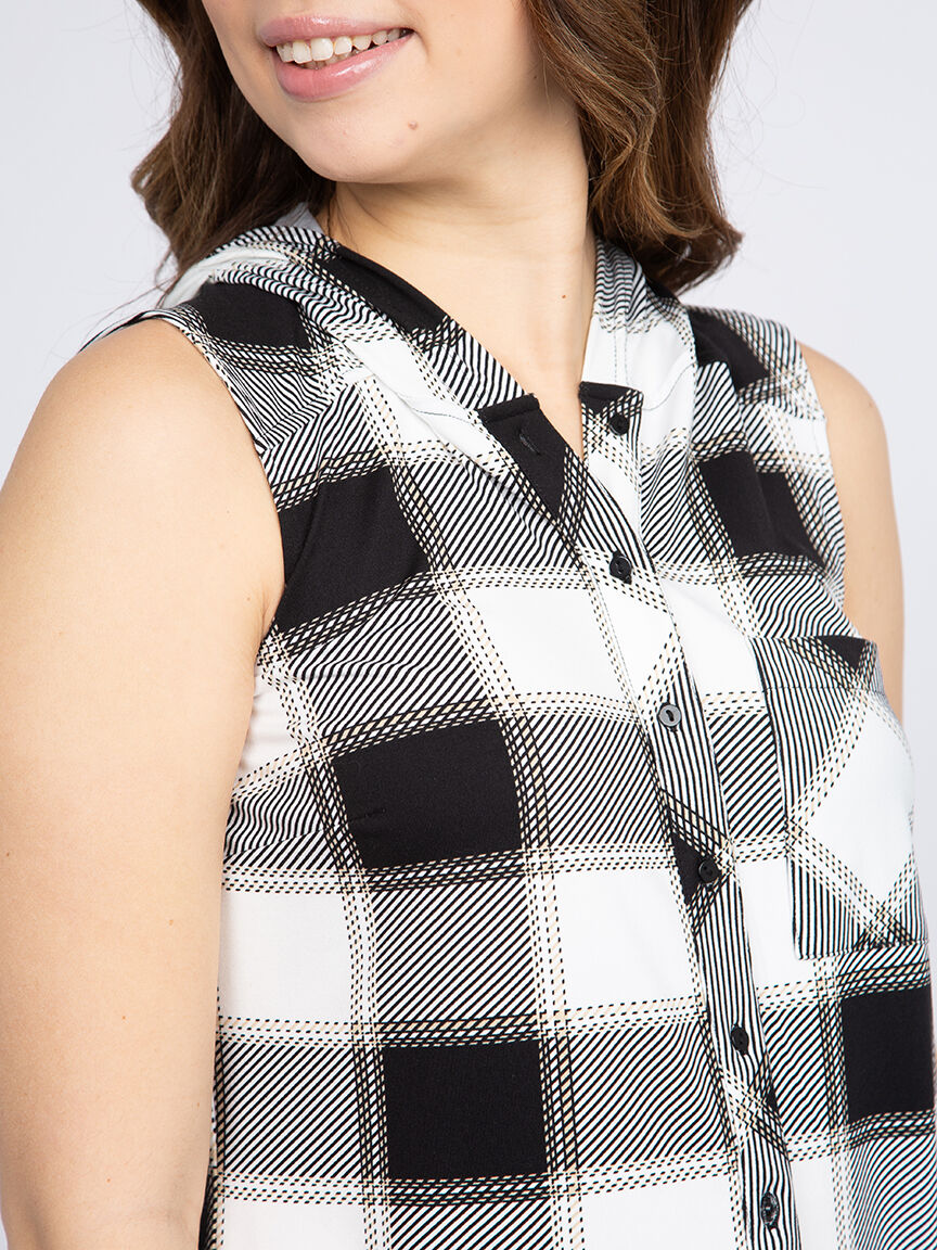 Women's Sleeveless Plaid Hoodie Image 1