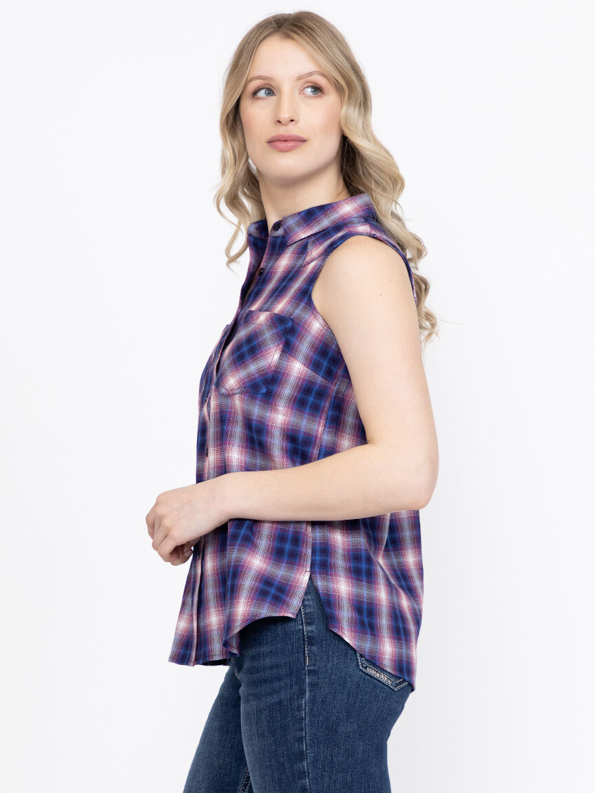 Women's Sleeveless Plaid Shirt Image 3