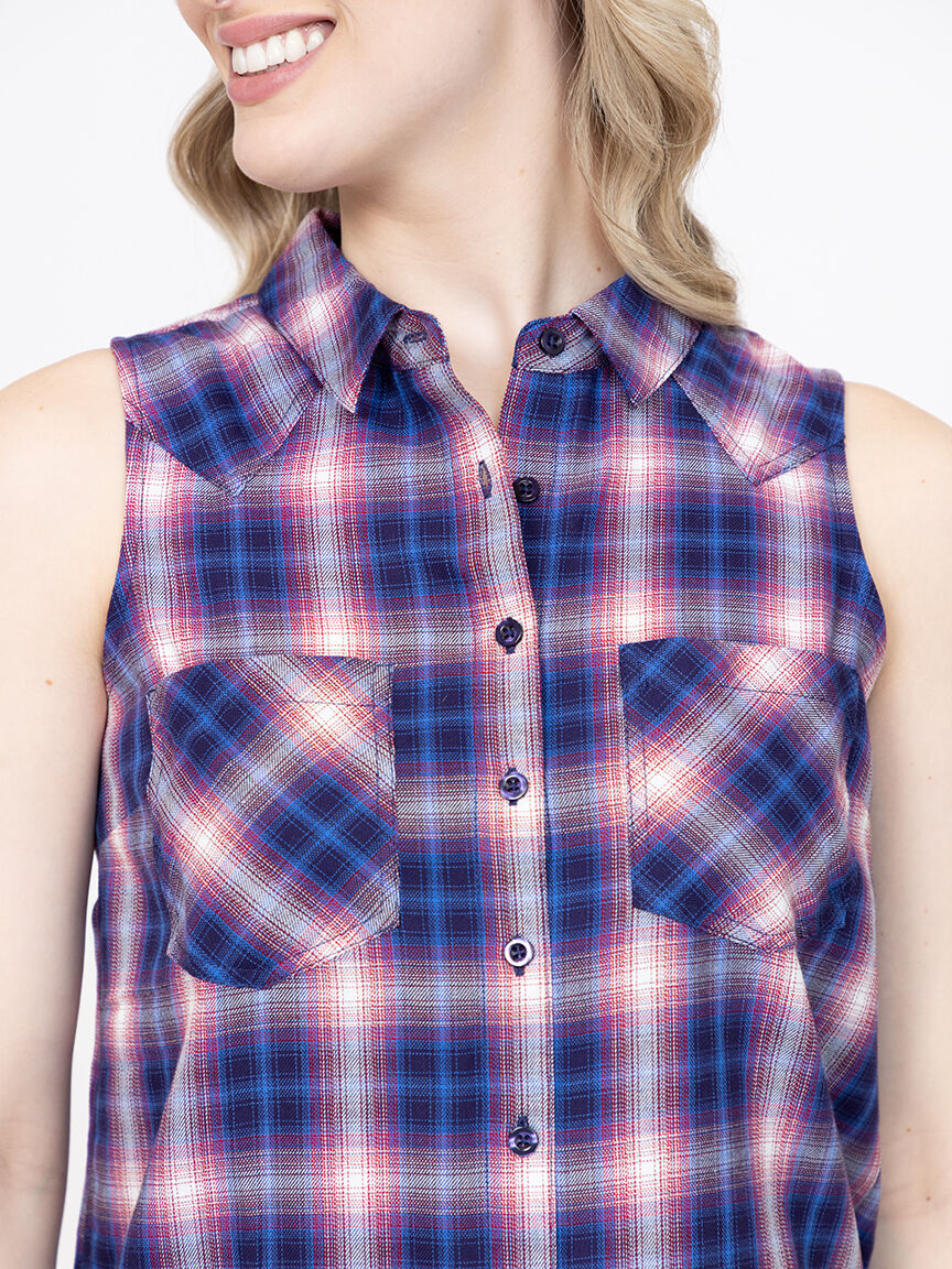 Women's Sleeveless Plaid Shirt Image 1