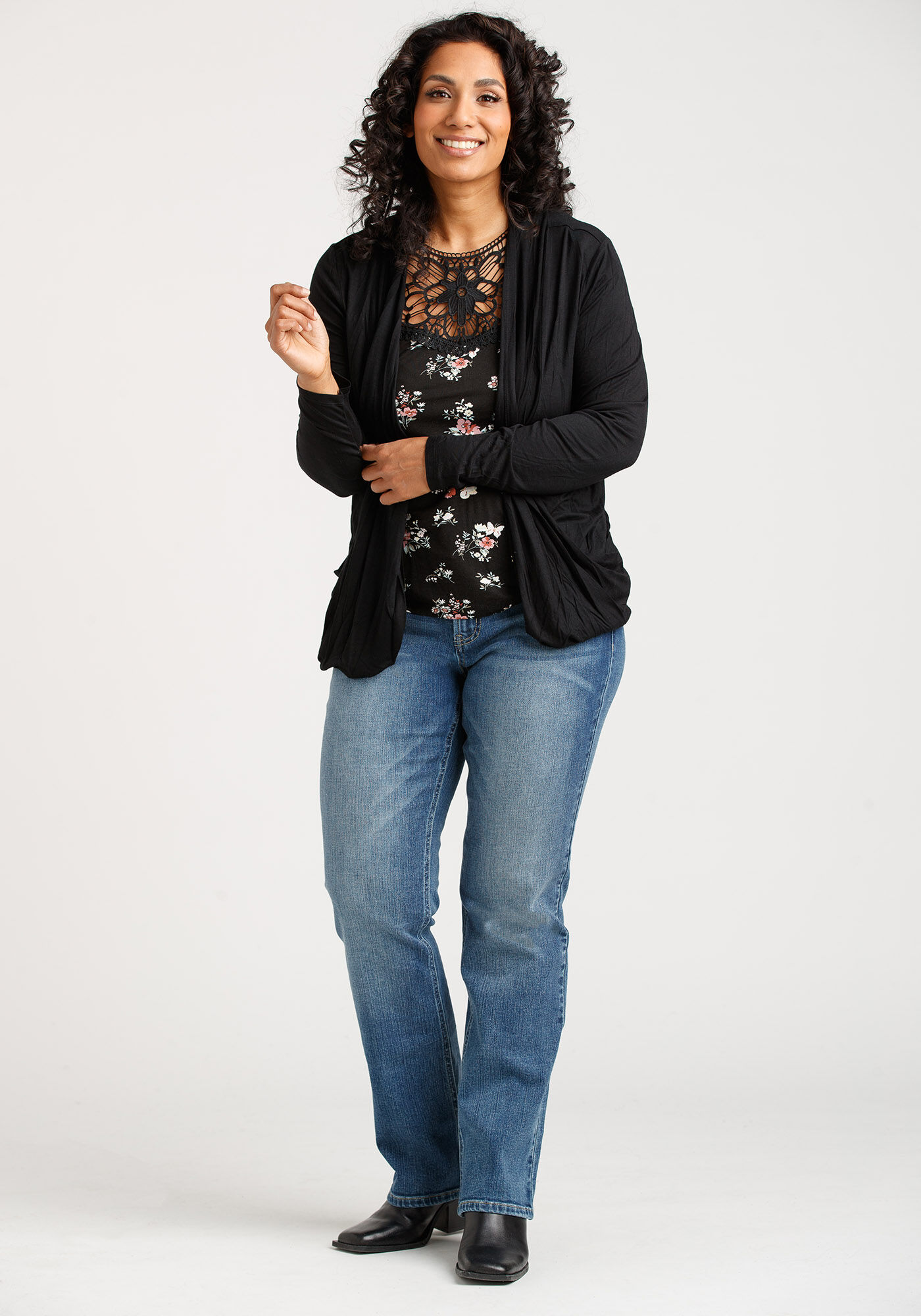 Rated 5 out of 5 by from Love the style Bought this a month ago and it goes with so much in my wardrobe. So many options and so comfy. Perfect light weight for spring!