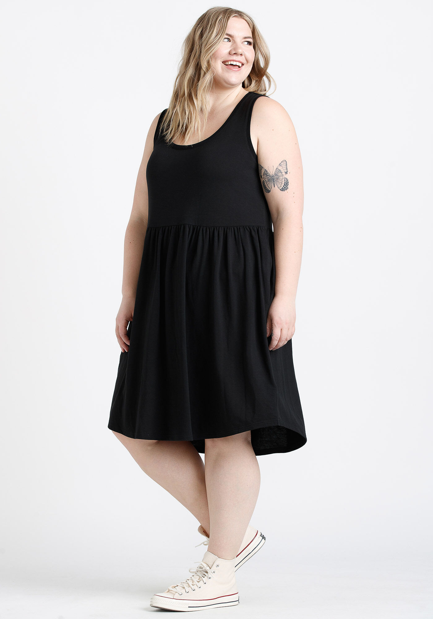 Rated 5 out of 5 by from Super cute & Comfy Love this cute little black dress. Nice and light. Fit is true to size. Washes up real nice. Just hang to dry.
