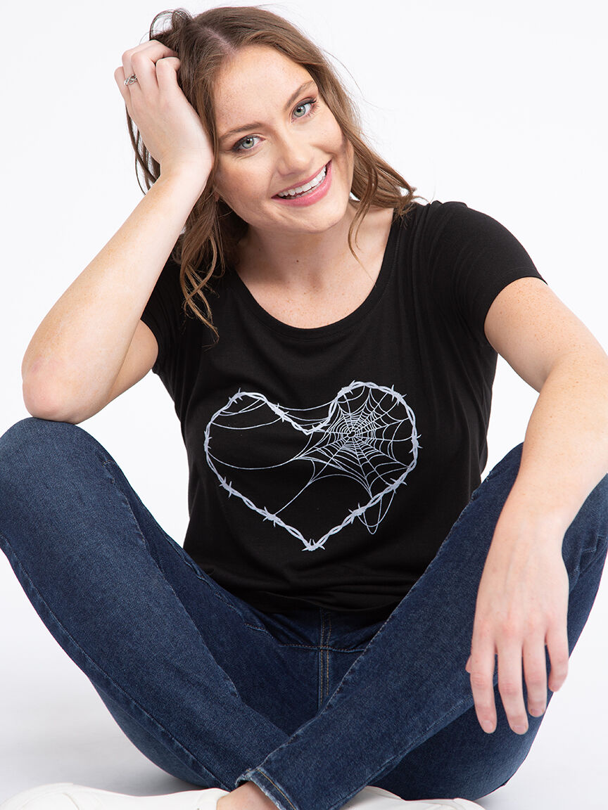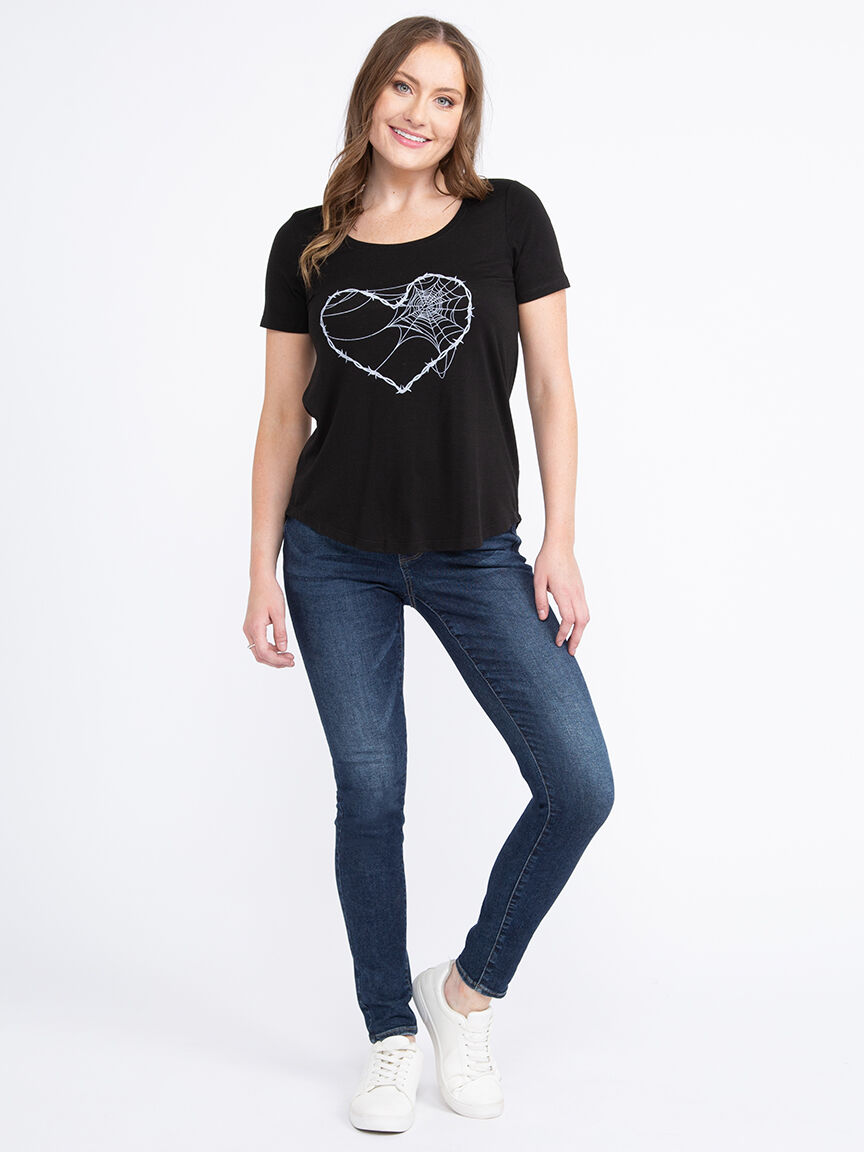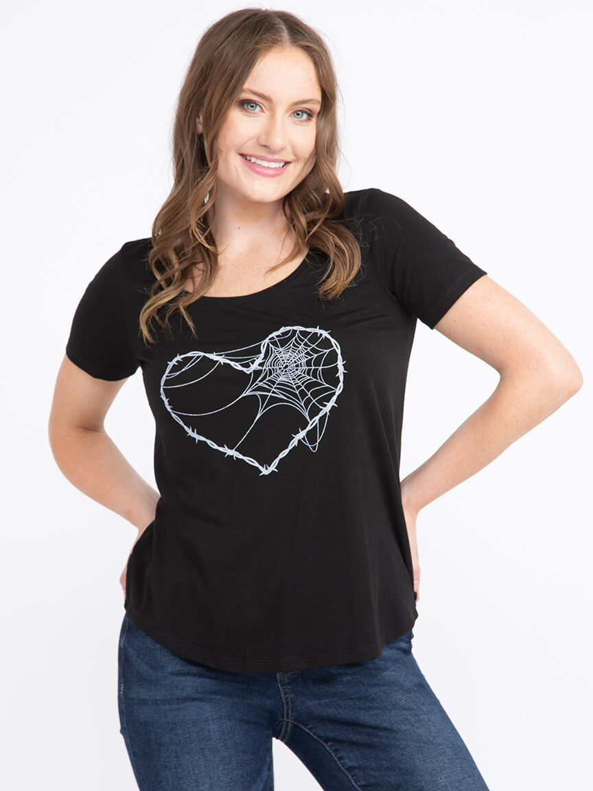 Women's Spiderweb Heart Scoop Neck Tee Image 1