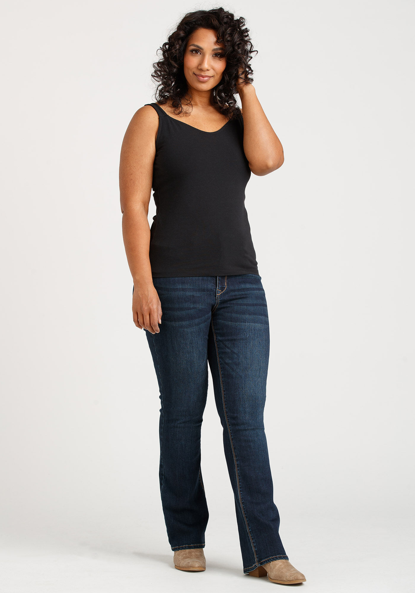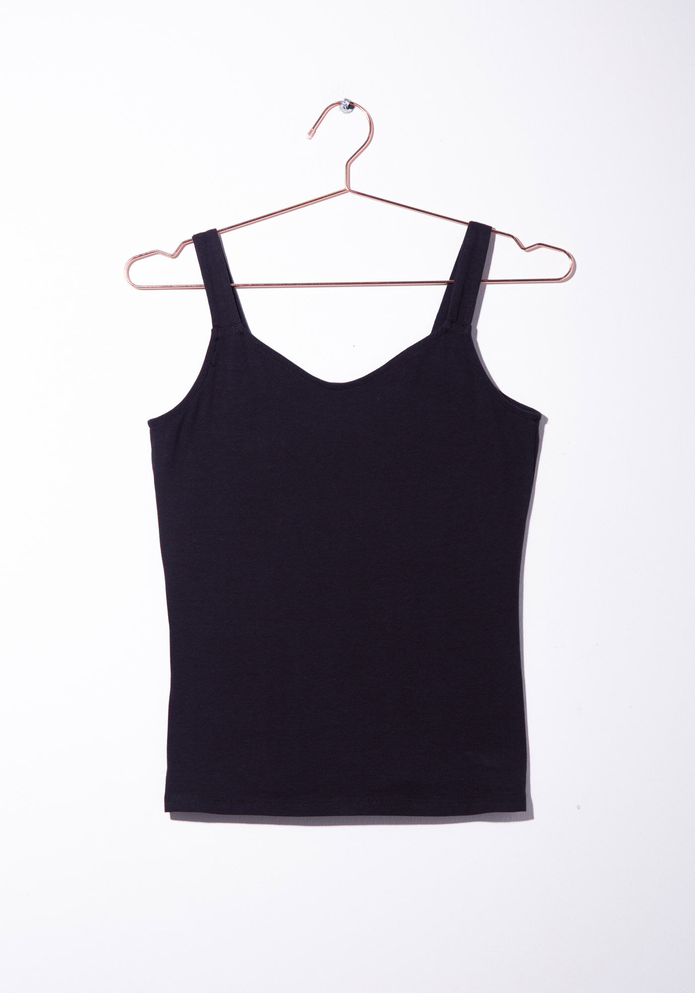 Rated 5 out of 5 by from Love the fit of this tank The cotton/spandex fabric is very comfortable and the style/length of this tank is perfect for me. Not too long or short. The straps completely cover my bra straps. I have bought it in 3 colours and hoping for more colours to become available.