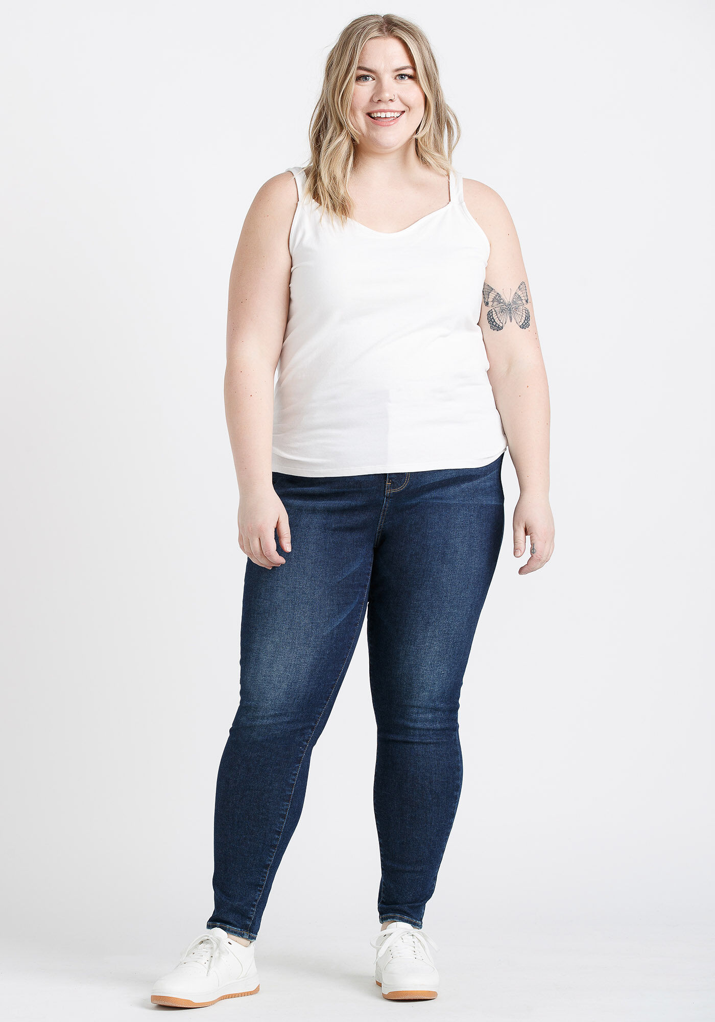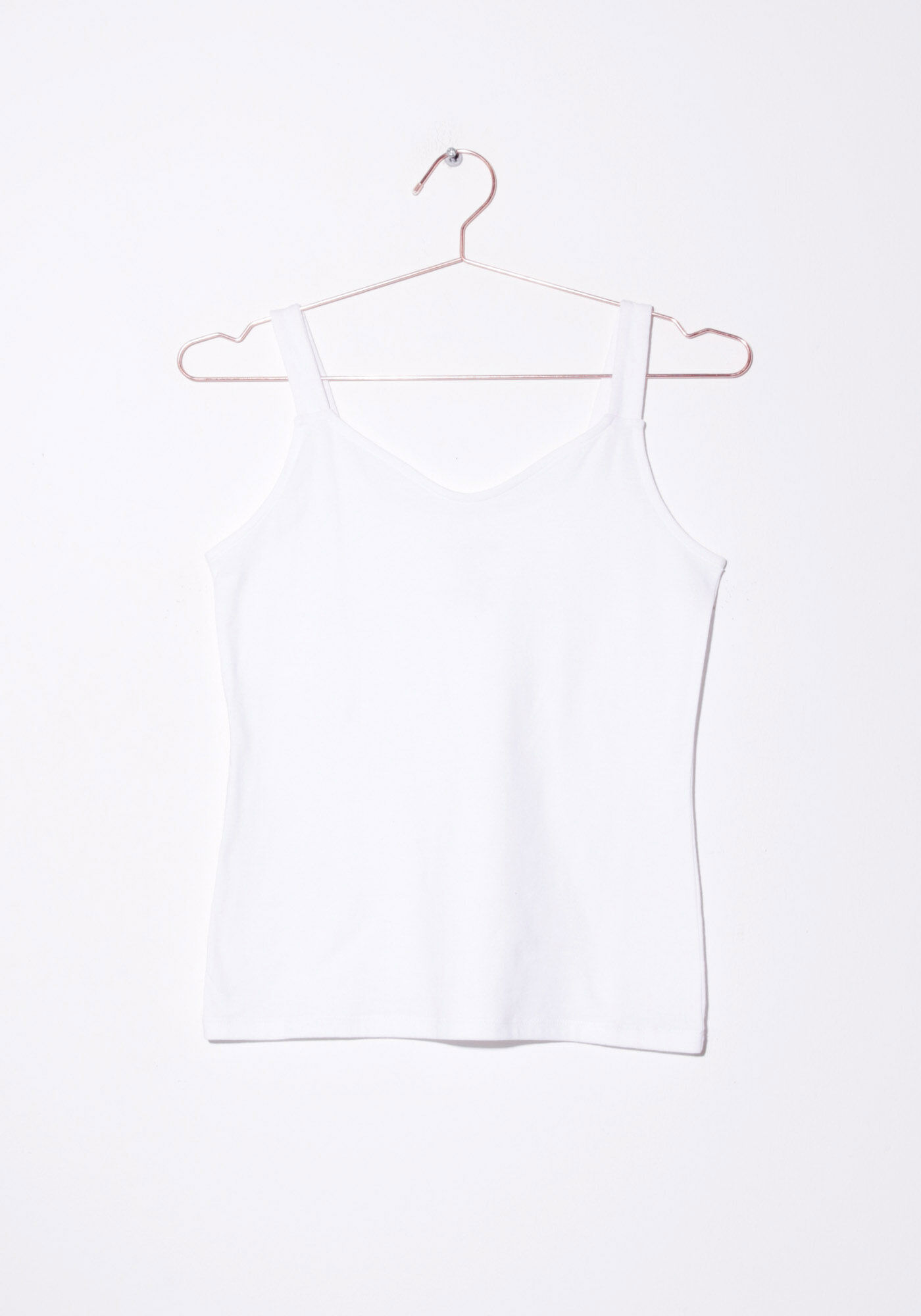 Rated 5 out of 5 by from Love the fit of this tank The cotton/spandex fabric is very comfortable and the style/length of this tank is perfect for me. Not too long or short. The straps completely cover my bra straps. I have bought it in 3 colours and hoping for more colours to become available.