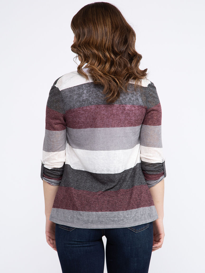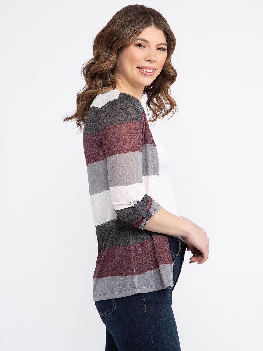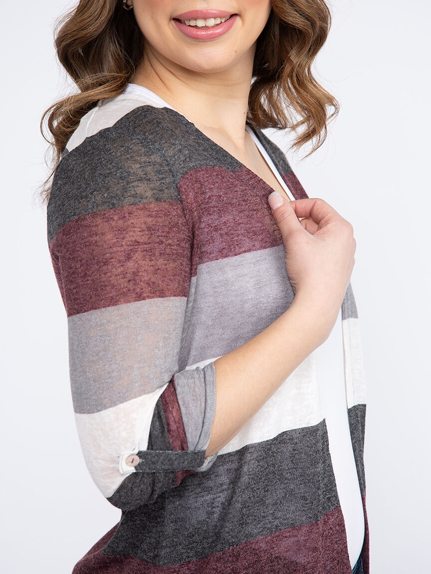 Women's Stripe Roll Sleeve Cardigan Image 3