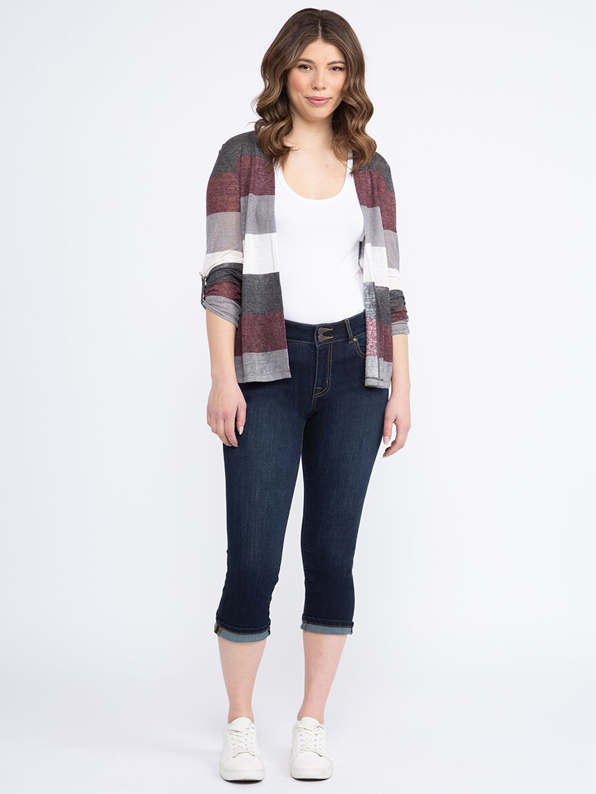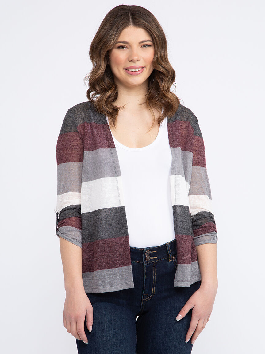 Women's Stripe Roll Sleeve Cardigan Image 1