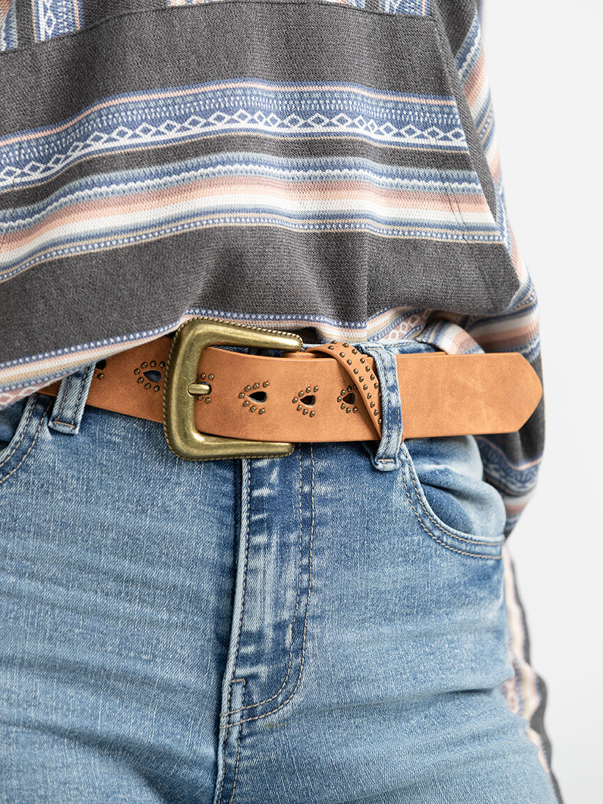 Women's Studded Perforated PU Belt