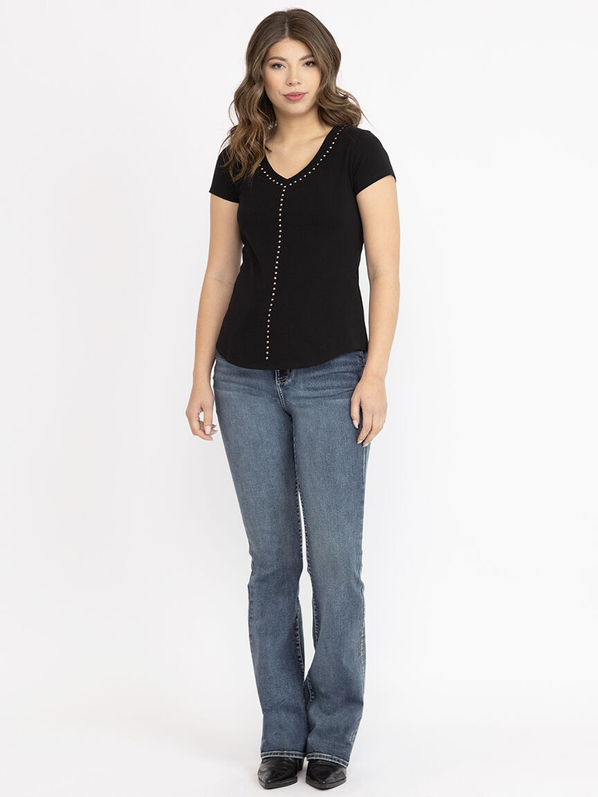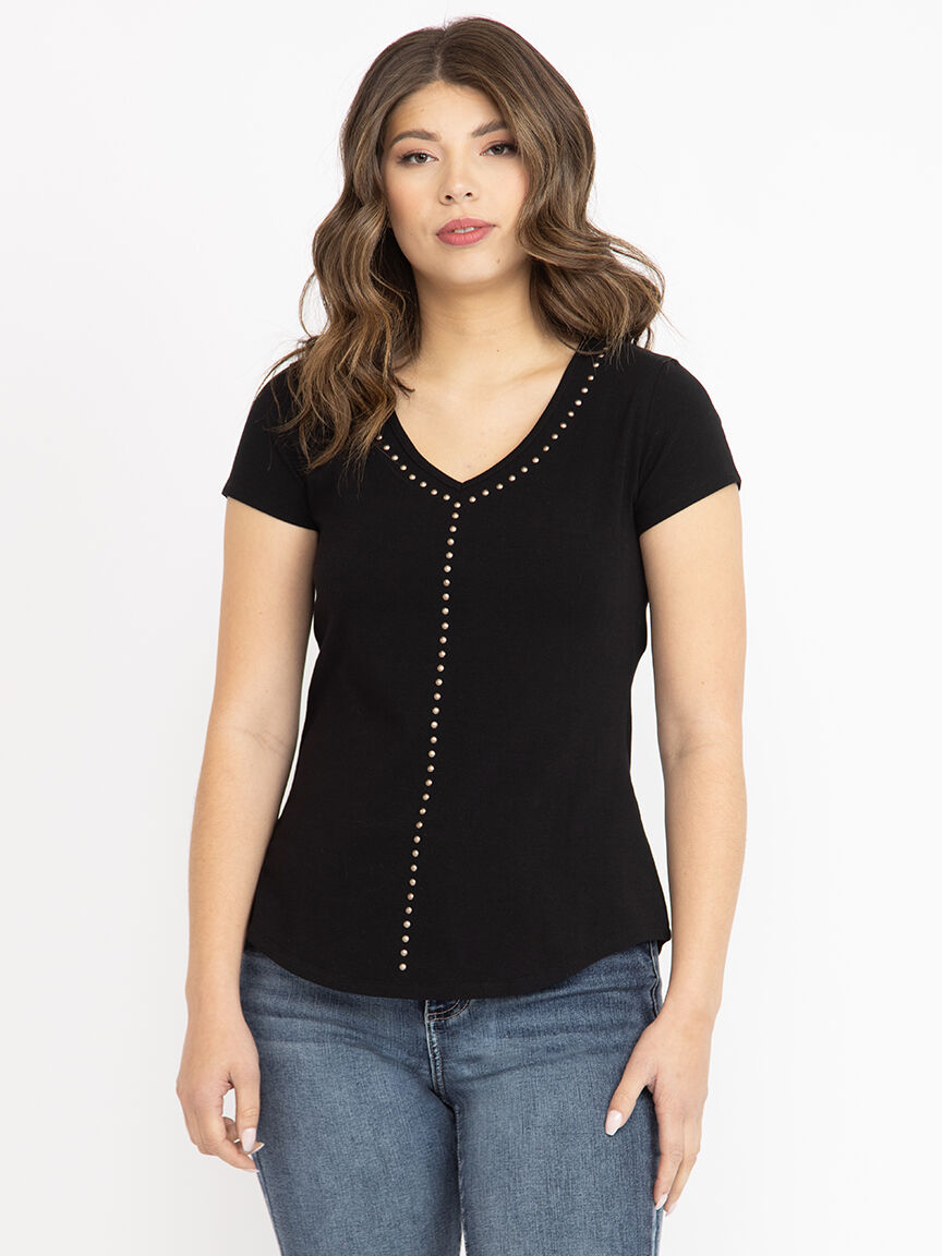 Women's Studded V Neck Tee Image 1