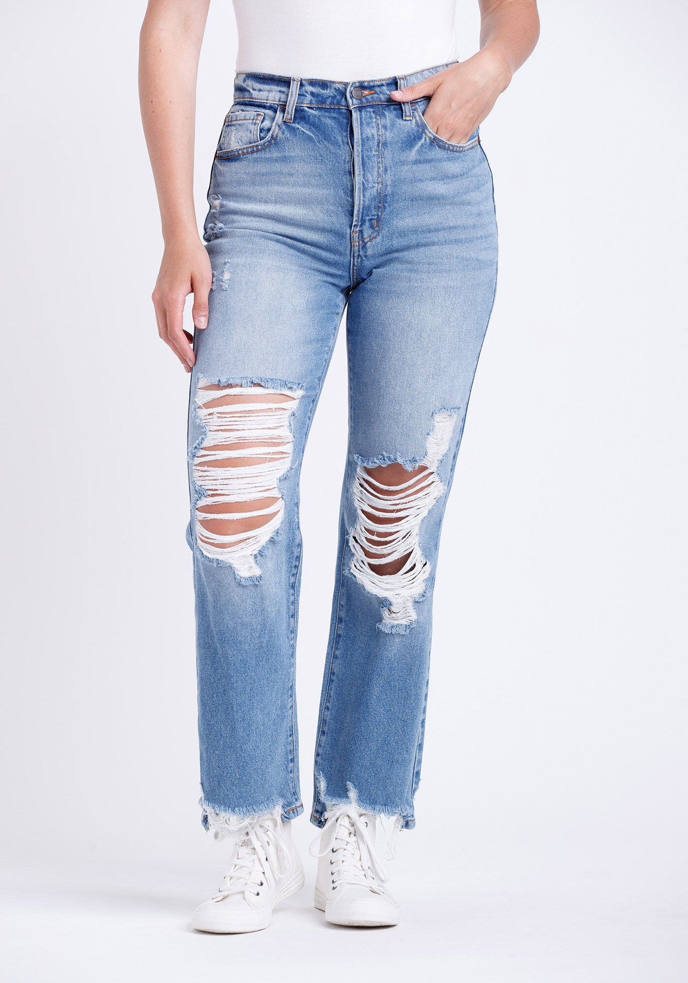 Women's Super High Rise Heavy Distress Dad Jeans Image 1