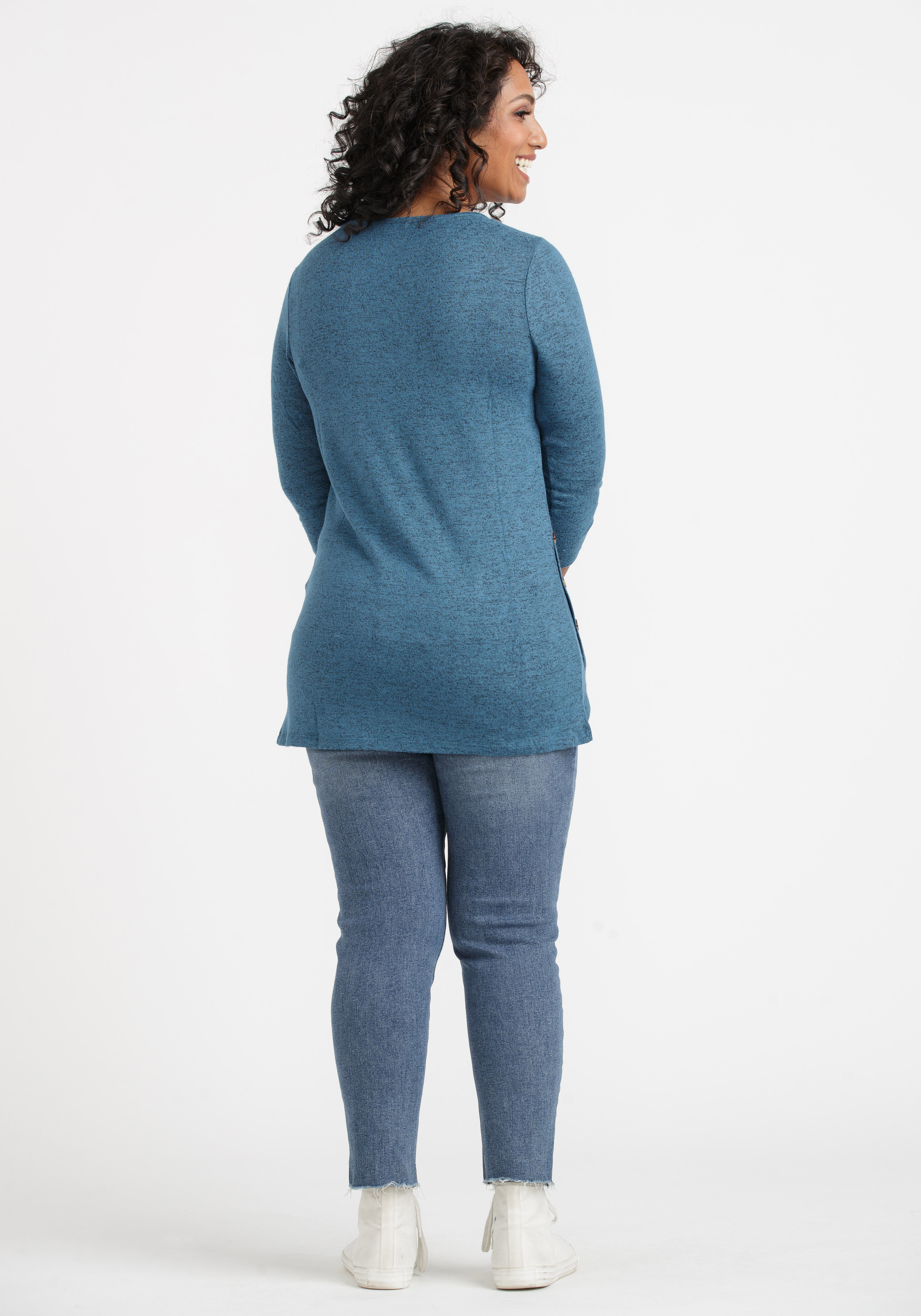 Rated 2 out of 5 by from Too clingy I love the length and feel of this top but it's so clingy. Not flattering! Wish it was more a flowy fabric.