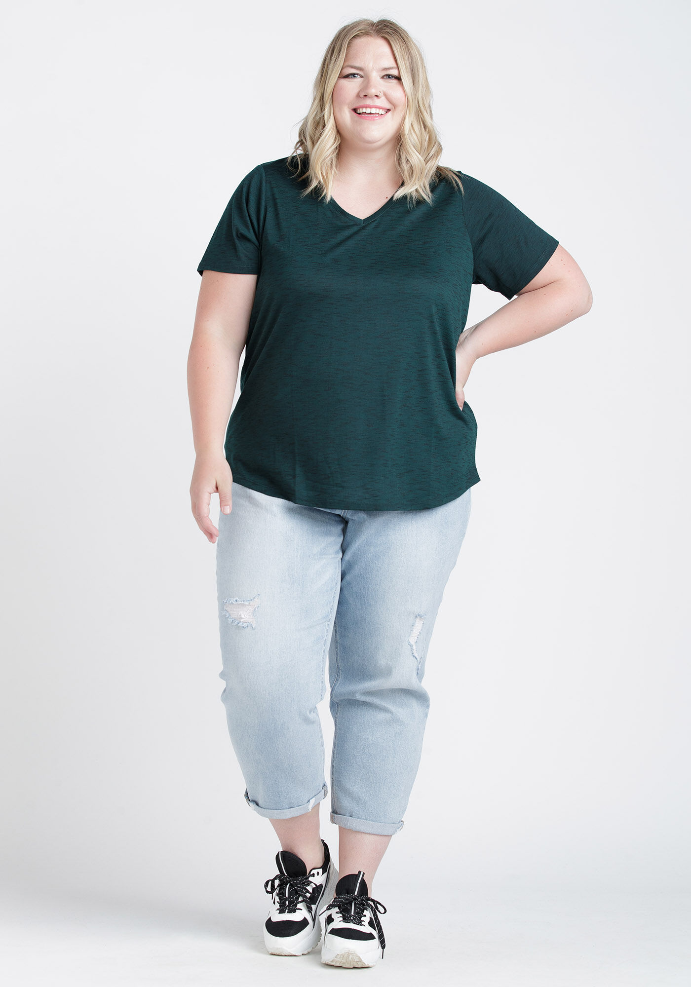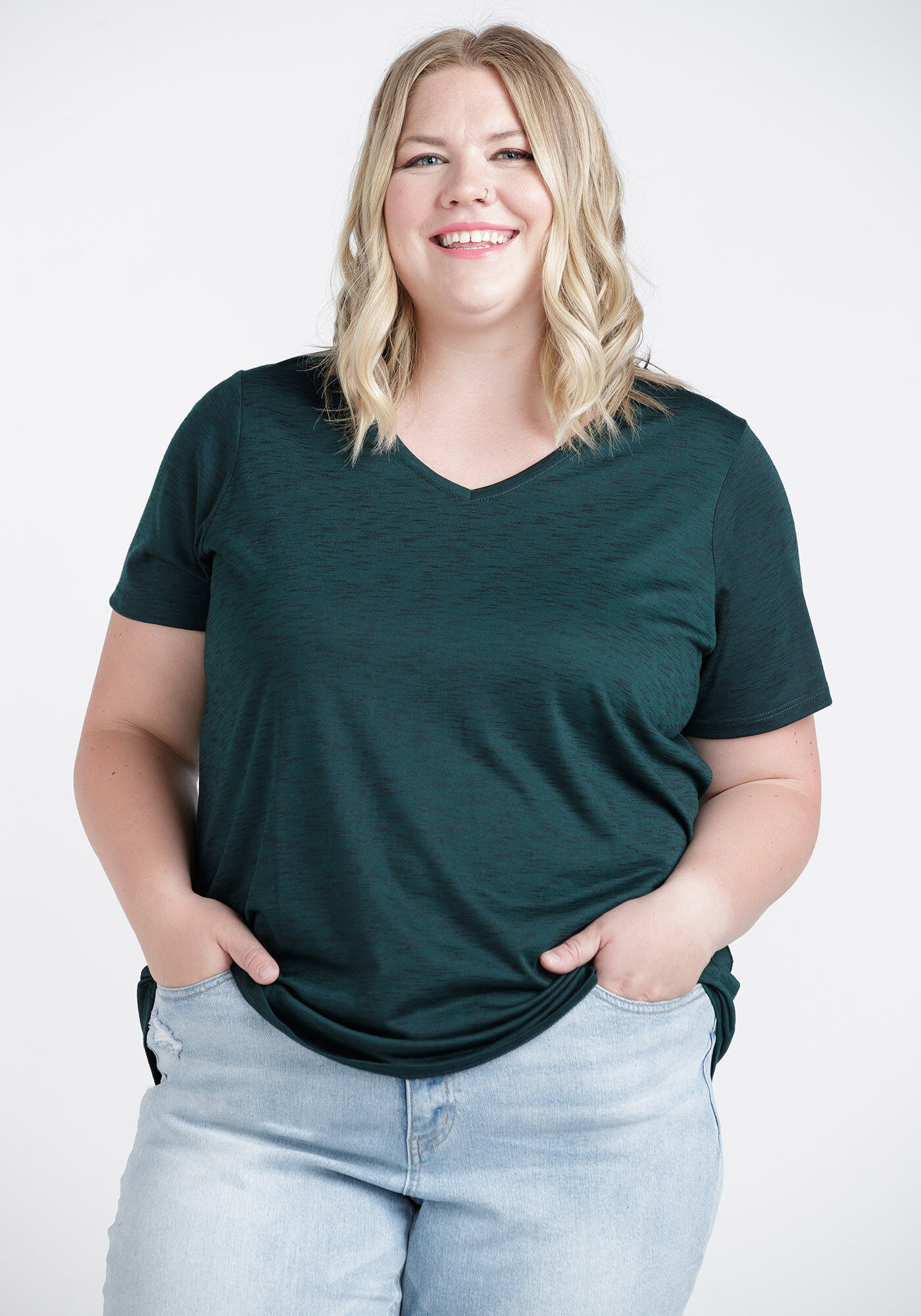 Women's Textured V-Neck Tee Image 1