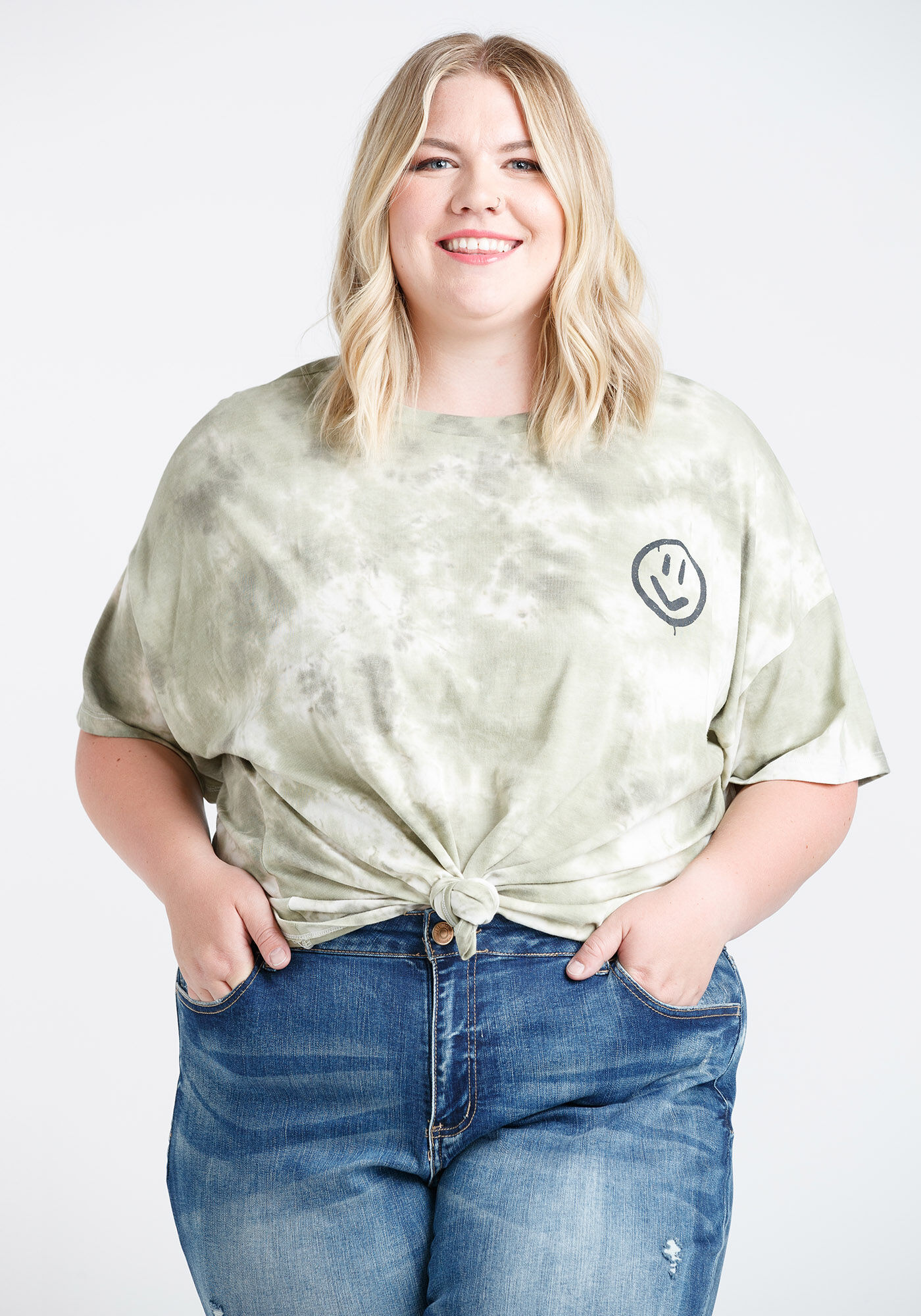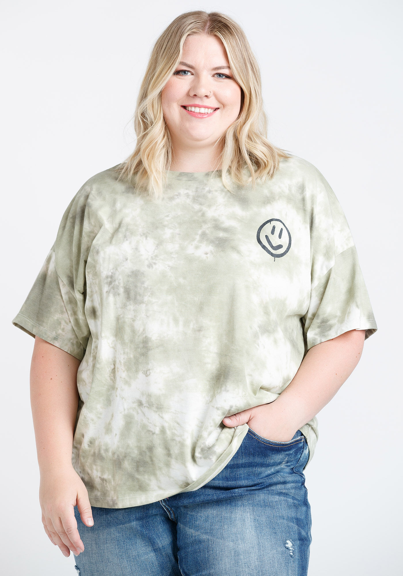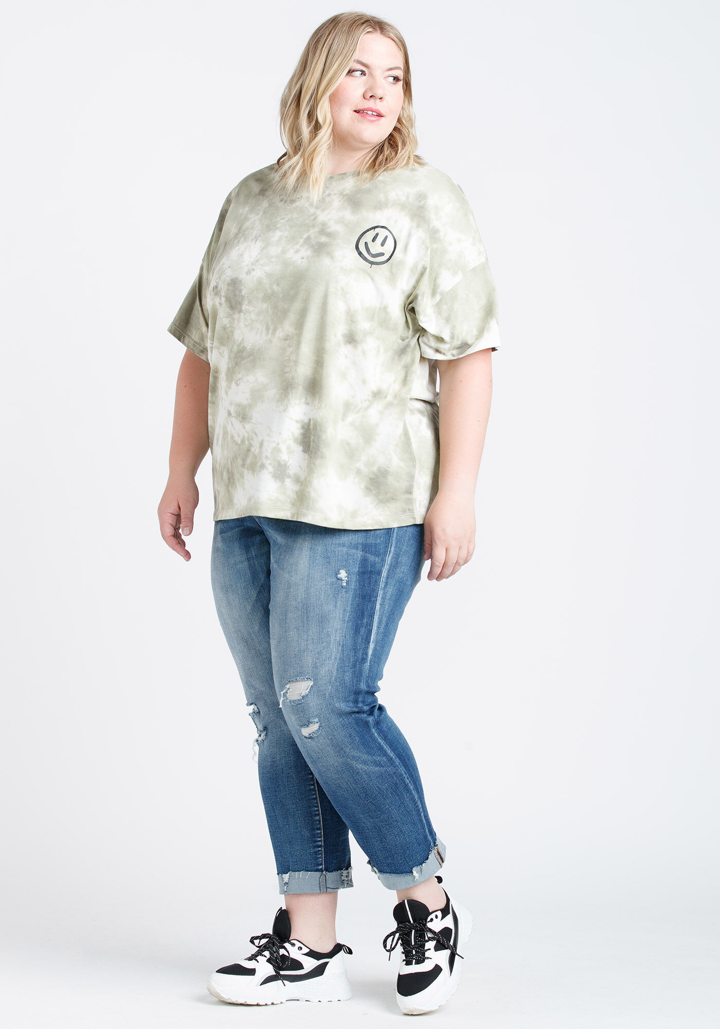 Women's Tie Dye Happy Face Oversized Tee Image 4