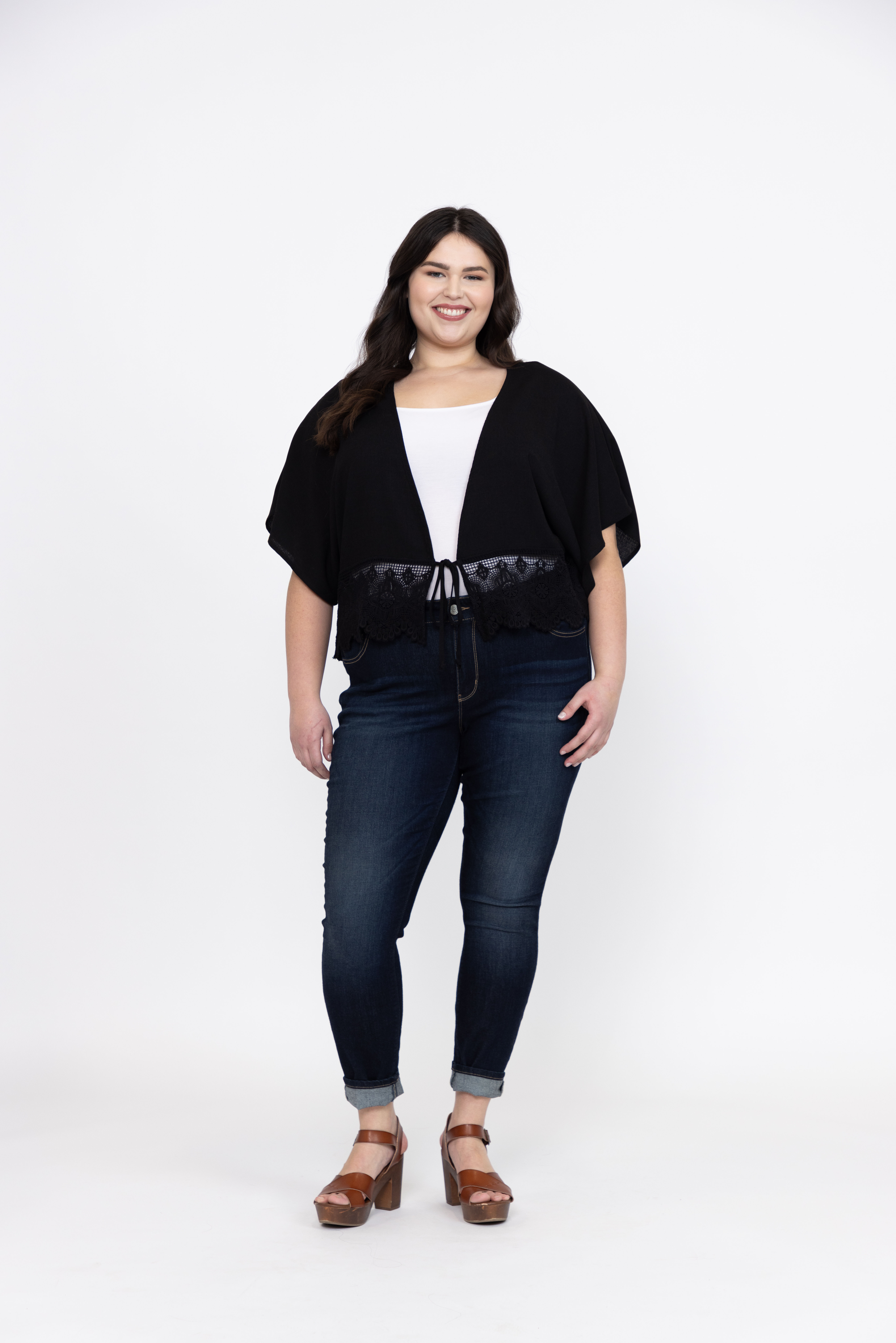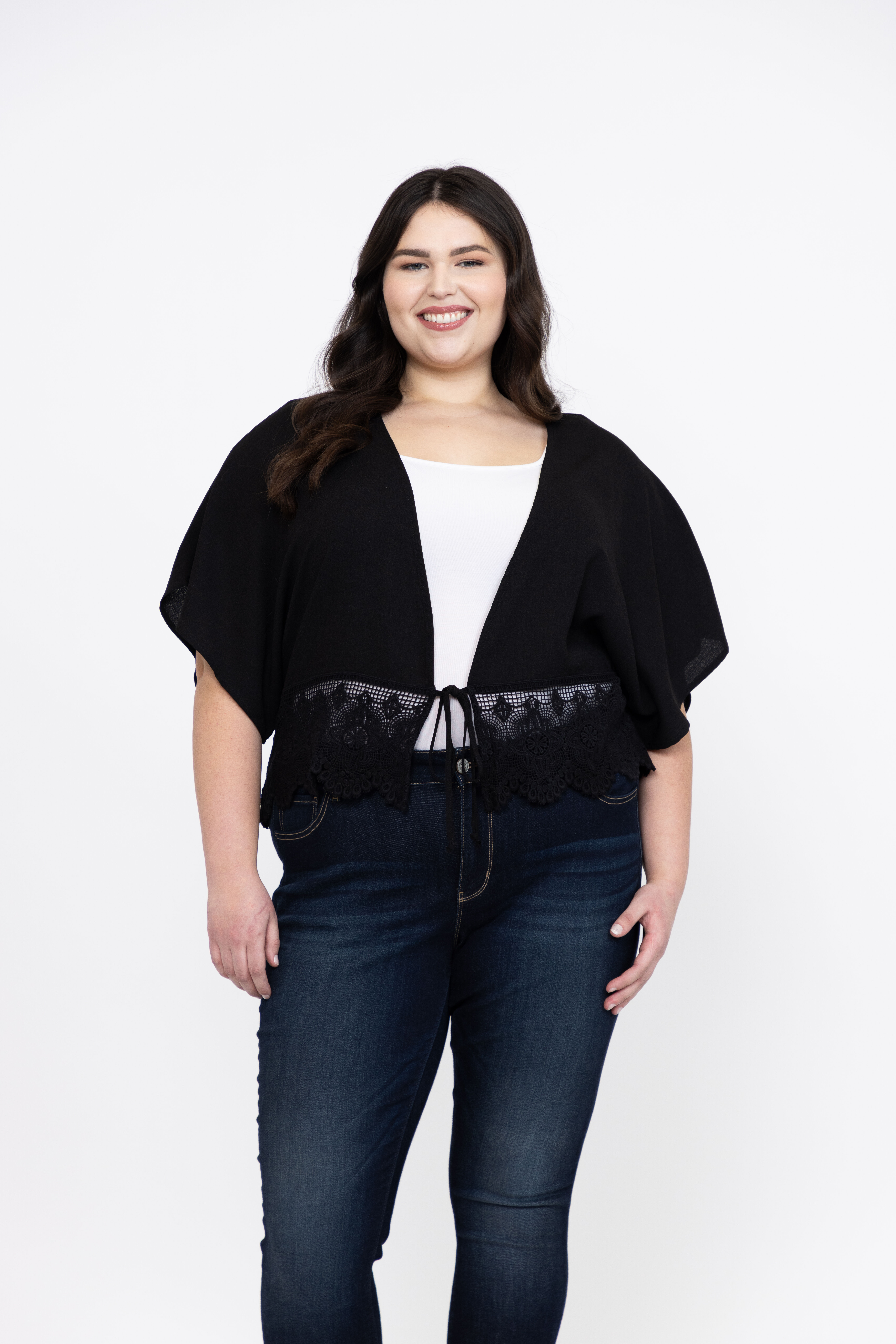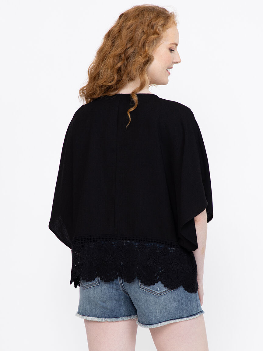 Rated 5 out of 5 by from Beautiful This is such a Pretty Topper! I bought the L/XL fits perfectly! I’m 5’5 160ish pounds and a 38DD. It will carry you through fall, very versatile!