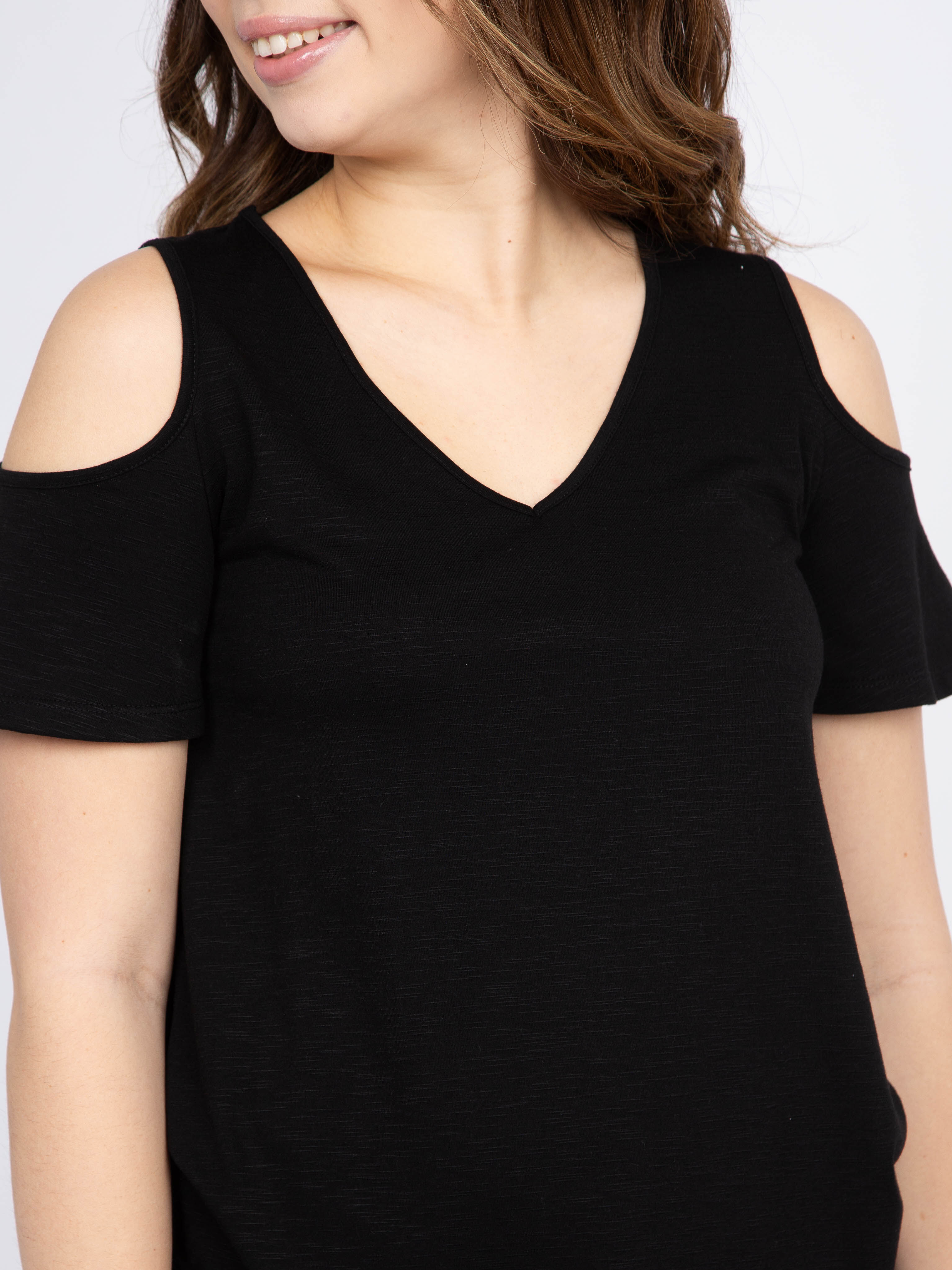 Women's V-Neck Cold Shoulder Tee Image 1