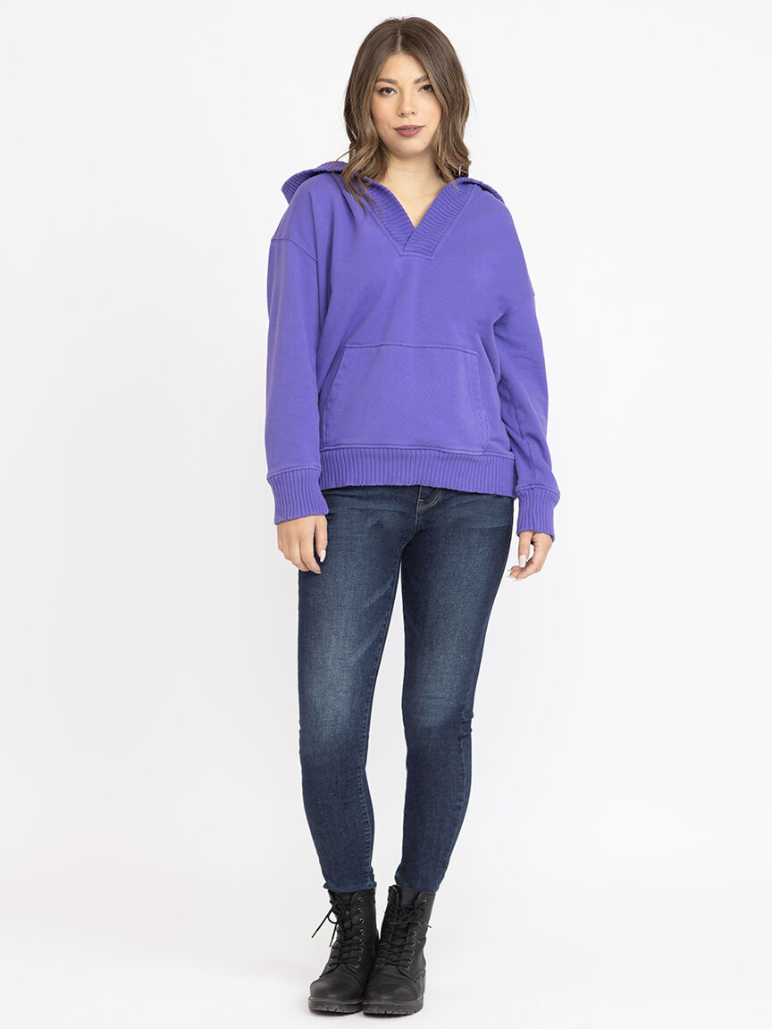 Rated 4 out of 5 by from The most beautiful colour! I love this sweater. The colour is beautiful. It's also warm and soft, without being too hot. As someone with long arms, the sleeves fit nicely and aren't too short. I wish the length of the sweater was longer though.