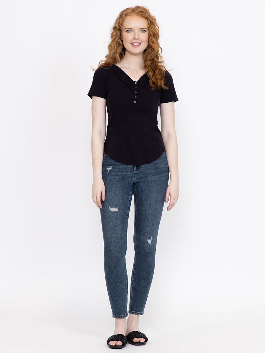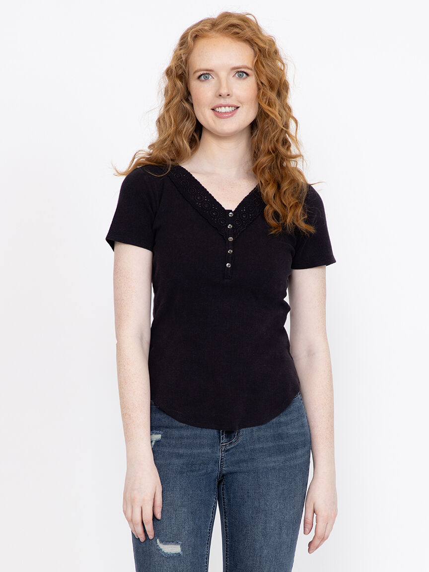 Women's Washed Ribbed Henley Tee Image 1