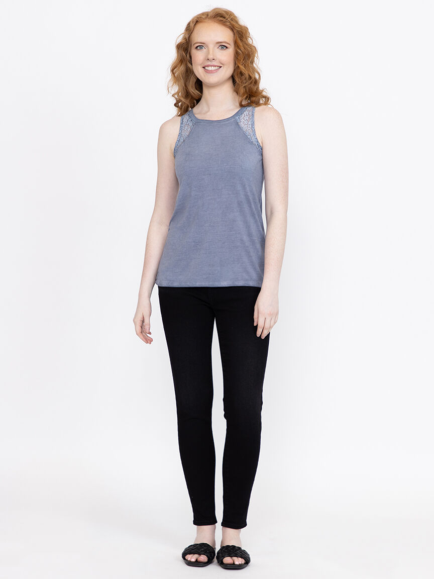 Women's Washed Tank With Lace Image 1